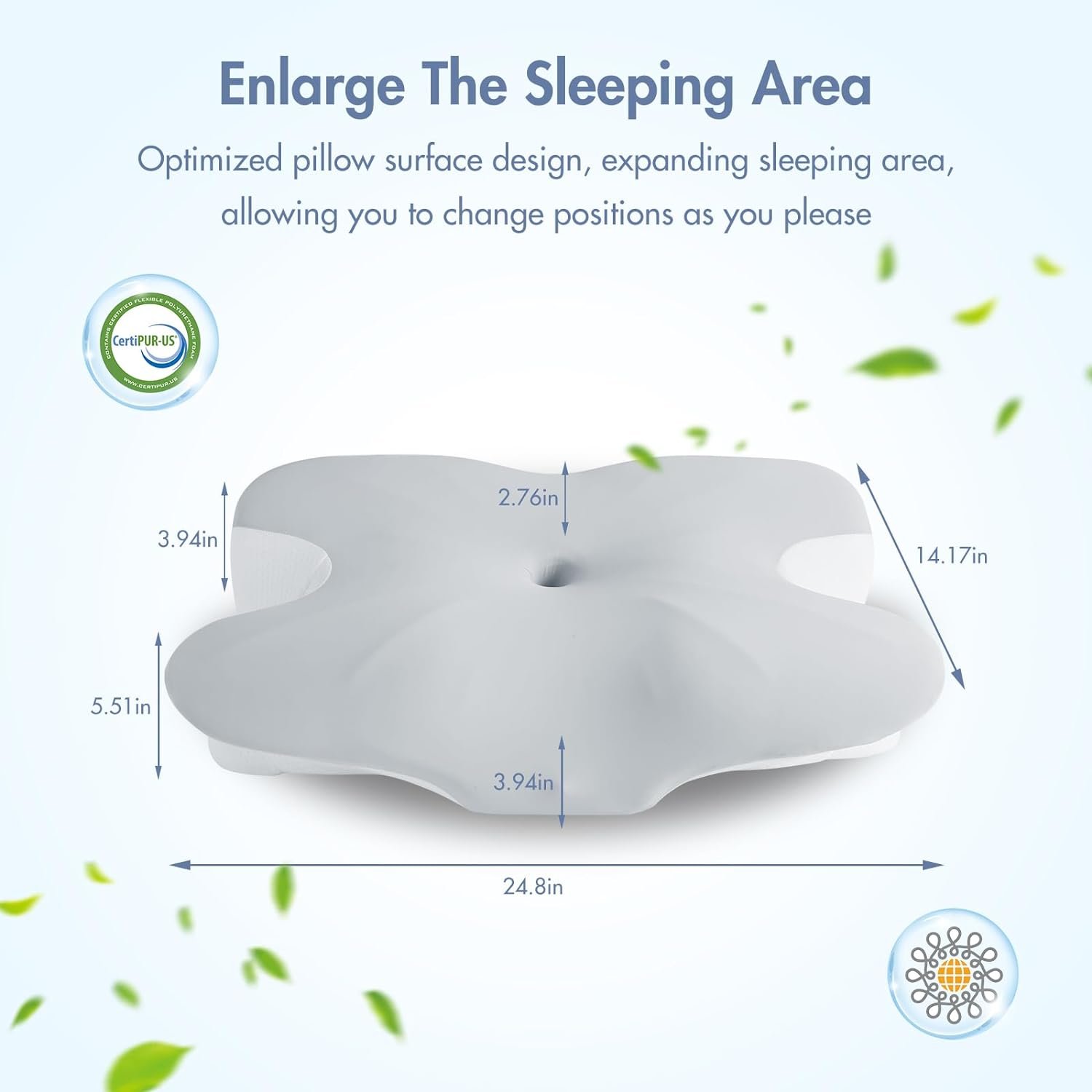 π§γInnovative Ergonomic Design- Your Cervical Massage TherapistγElegear Ergonomic Pillow for Sleeping has 5 multifunctional areas: ARC Cervical Support, Shoulder Contour, Center Cavity, Side Sleeping Area, Arm Support Area, these multi-directional care can help you relieve headaches, stiff neck, sore shoulders, snoring and other signs, the butterfly-shaped design is aesthetically pleasing and increases the sleeping area to improve your sleep quality.