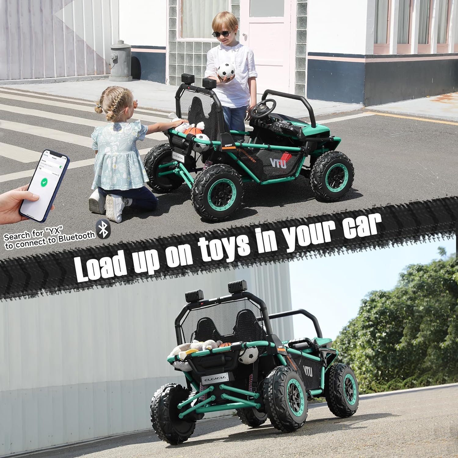 💺𝙒𝙞𝙙𝙚𝙧 𝟮 𝙎𝙚𝙖𝙩𝙚𝙧 𝙐𝙏𝙑-ELEMARA Kids UTV is a true two-seater ride on car, with a seat width of 20″ wide enough for two children to stretch their feet comfortably, and both seats are equipped with safety belts to ensure their safety