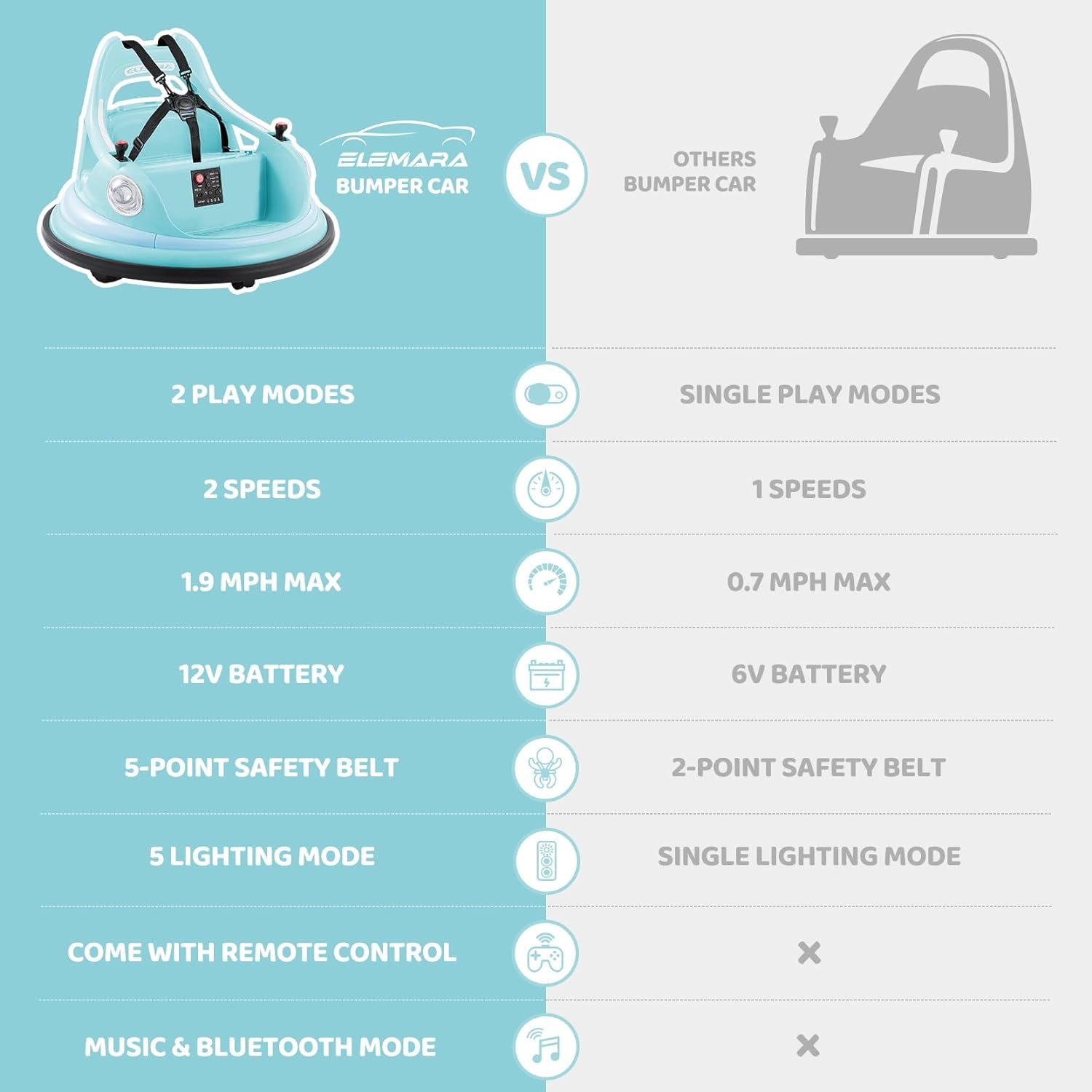 【Bumper Car with 1.9mph Max】ELEMARA Bumper Car for Kids allows your child to enjoy top speeds of up to 1.9mph for unparalleled fun and excitement! Enjoy the thrilling collision experience!