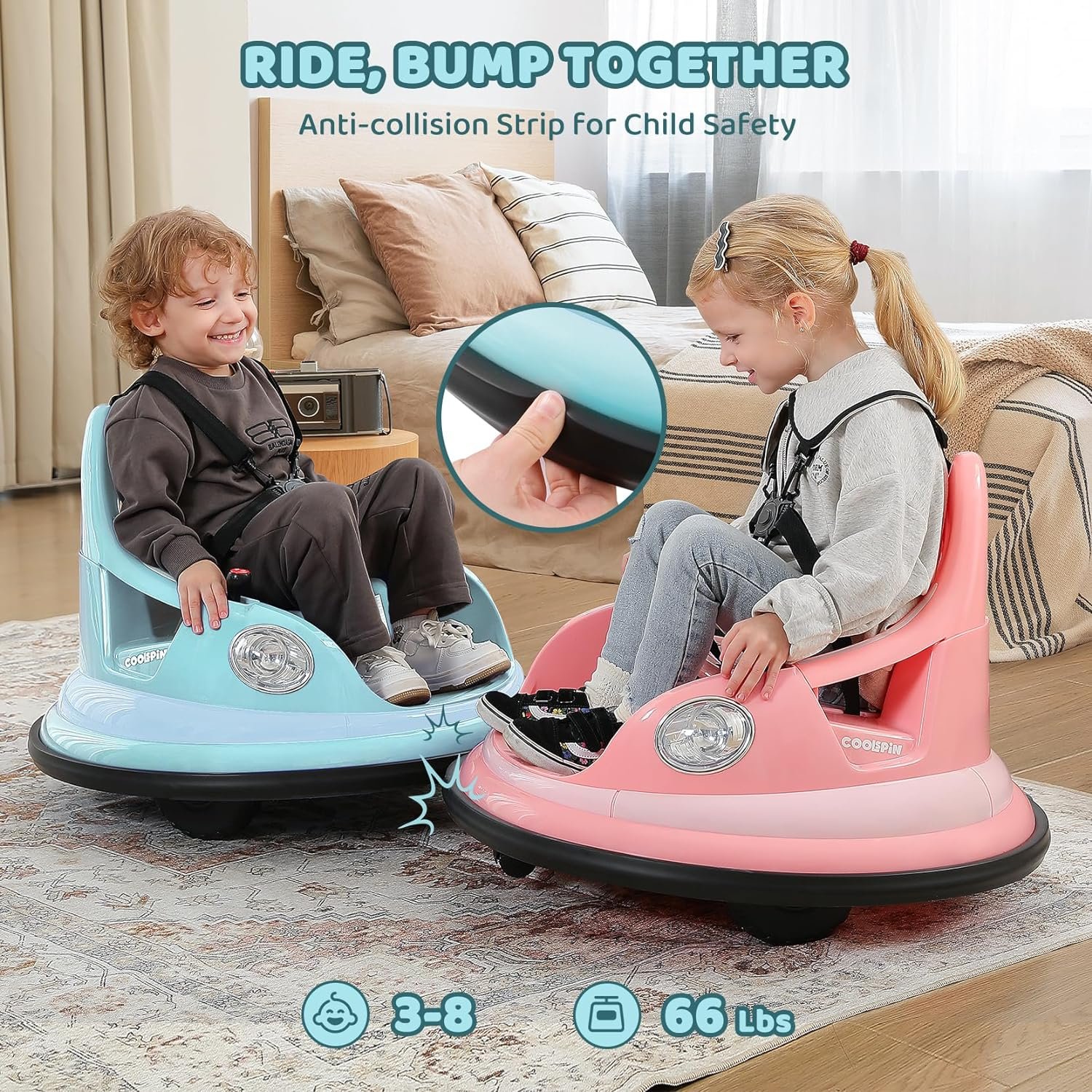 【Safe and Secure】High-quality materials ensure durability and a maximum weight capacity of 66lbs. Our electric bumper car for kids is equipped with a reliable 12V battery and features a 5-point safety belt for maximum protection.