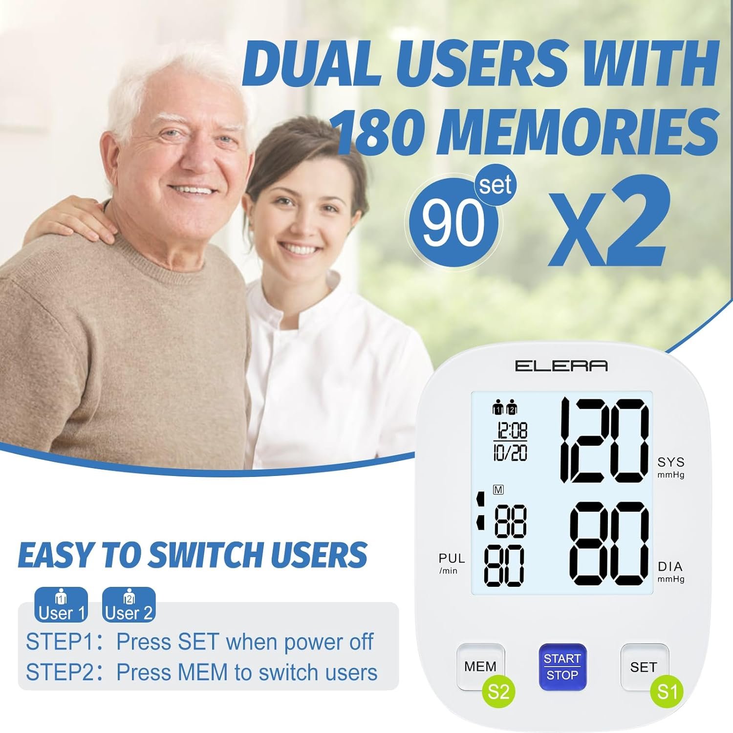 ✅2 USERS & 180 MEMORIES: Our monitor stores up to 180 records with date and time stamp, making it easy for you to track your past data. It also includes a two-user mode, automatically recording the measurement results of each user.