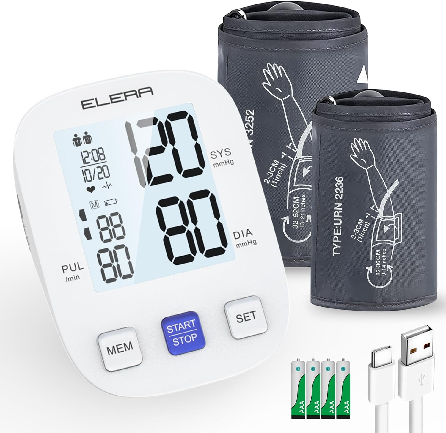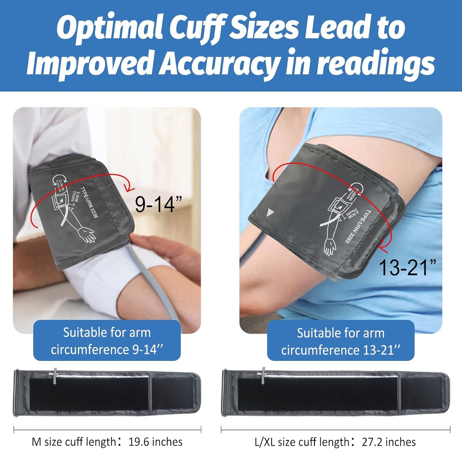 ✅TWO SIZE BP CUFFS FIT ALL: Ensure accurate and stable readings by using the right cuff size. Our monitor includes two cuffs – standard 9″-14″(22-36cm) and extra large cuff 13″-21″(32-52cm) – suitable for most people with different arm sizes.