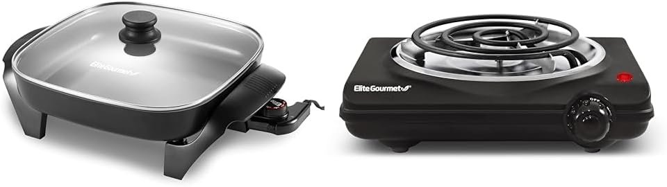 The Elite Gourmet 12”x 12” Ceramic Non-stick Electric Skillet is one of the most versatile and convenient small kitchen appliances you can own. Prepare a variety of tasty meals in minutes and without using multiple pots, pans or appliances. With a durable Ceramic cooking surface and cast-in heating element, clean-up of our fully immersible skillet is easy (upon removal of the temperature control). Cook and serve up sumptuous meats, vegetables, soups, chili, stir-fry, desserts and many more foods for your entire family & friends. The Electric Skillet features a variable-temperature dial with a 250-450°F degree range, as well as an indicator light to let you know when power is on and desired temperature is achieved. Tall sides and a glass lid keep moisture in and protect against splatters as you monitor cooking. With its cool-touch handles you can safely tip the skillet to drain juices for soups and gravy. The Elite Gourmet 12″ Ceramic Coated Electric Skillet lets you prepare meals without heating up the entire kitchen making it one of the most cost-effective of kitchen accessories.