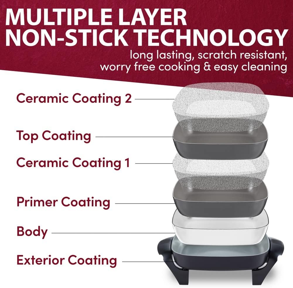 Elite Gourmet EG2212 12″x12″x2.15” Healthy Ceramic Coated Electric Skillet, Dishwasher Safe, Rapid Heat Up, 1200W, Dark Grey