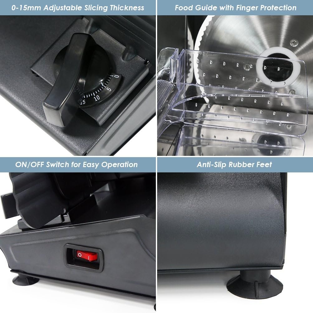 FINALLY, HERE’S A MEAT SLICER THAT WILL PASS THE TEST OF TIME – Unlike all those cheaply-made food slicers, our meat slicer is made from premium-quality die-cast aluminum, which is not only super-durable, but also rustproof and easy to clean. As a result, you can rest assured that your robust meat slicer will endure any abuse without skipping a beat