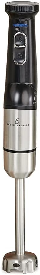 Emeril’s chef-inspired immersion blender Blender & Beyond elevates everyday pureeing, mixing, blending & whipping with three ergonomic positions to choose from. Simple, one-handed operation allows you to twist the handle to the position you want and lock easily into place. Variable speed control from low to high allows you to customize textures for a variety of meal-making tasks from delicate sauces and dips to blending soups and baby food, whipping cream, or creating nutritious shakes and smoothies. Includes blending wand, charging base with adaptor, whisk and double beater attachments, deluxe mixing beaker with lid, recipe guide, and stainless blade guard to help protect the stainless-steel immersion blade inside your bowls and cookware.
