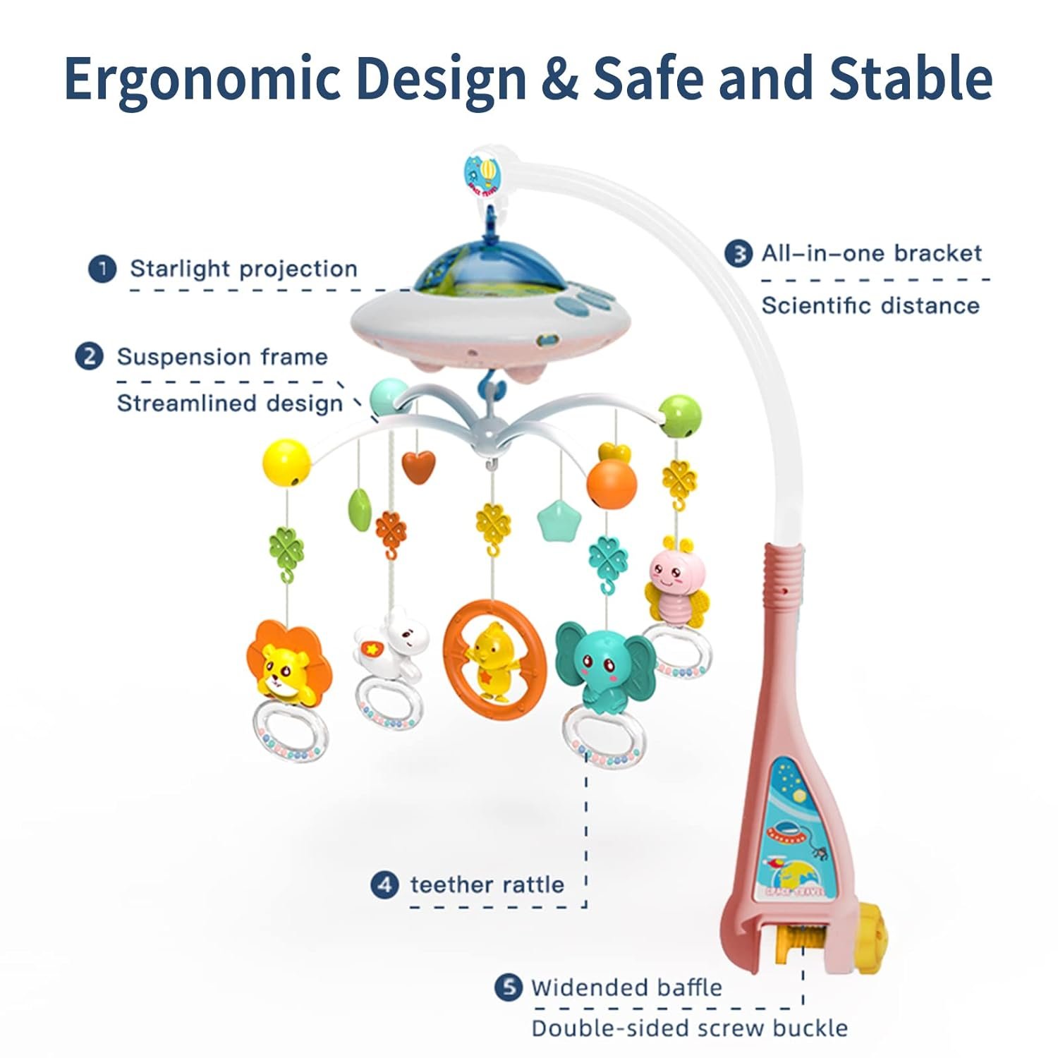 🧩Rotate dreamily: 360° rotating hanging rattles with beautiful music is always easier to attract the baby’s attention.This baby mobile provides an activity center for babies, providing various fun ways to play.