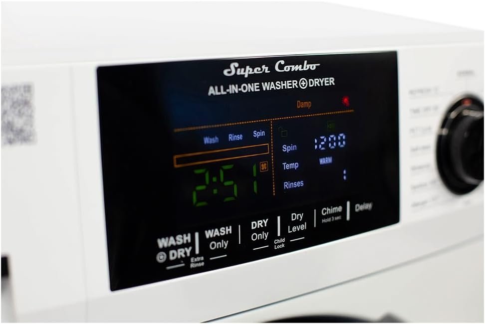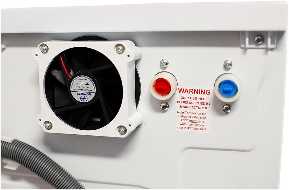 The Combo Washer Dryer EZ 4800 provides energy-saving, innovative washing, better drying, and built-in diagnostics for ultimate convenience. Specifically built for RV, with a Vented option, this appliance sets a new standard in convenience. With a quick-access QR code, user-friendly touch buttons, and a 2-minute winterizing cycle, this appliance sets a new standard in convenience. The color-coded LED display enhances visibility. Plus it comes with dual fans for faster drying and a 13-code diagnostics system for troubleshooting. The automatic water and dry level adjustments, while maintaining compliance with California’s Prop 65 standards. The EZ 4800 also has other features like child lock, delay start, oversuds control, and adjustable leveling legs for an easy installation process. It has 1.62 cu. ft. capacity, 15 wash programs, and a stainless steel drum with a spin speed of 1400 rpm. With a weight of 161 lbs (net) and dimensions of 33.5 x 23.6 x 21.8 inches, this appliance ensures a powerful yet compact laundry solution. Additionally, it is ETL-certified and backed by a 1-year parts and labor warranty. The machine is available in black, white, or silver.