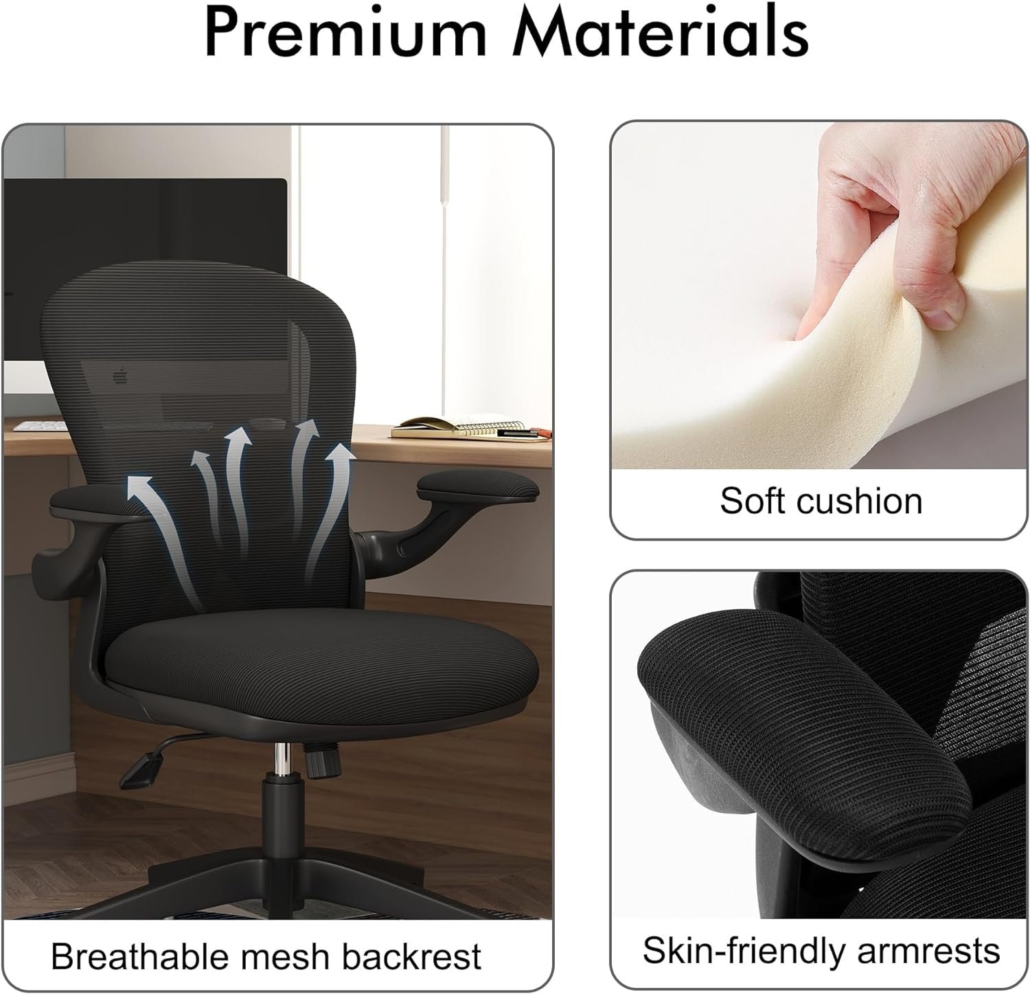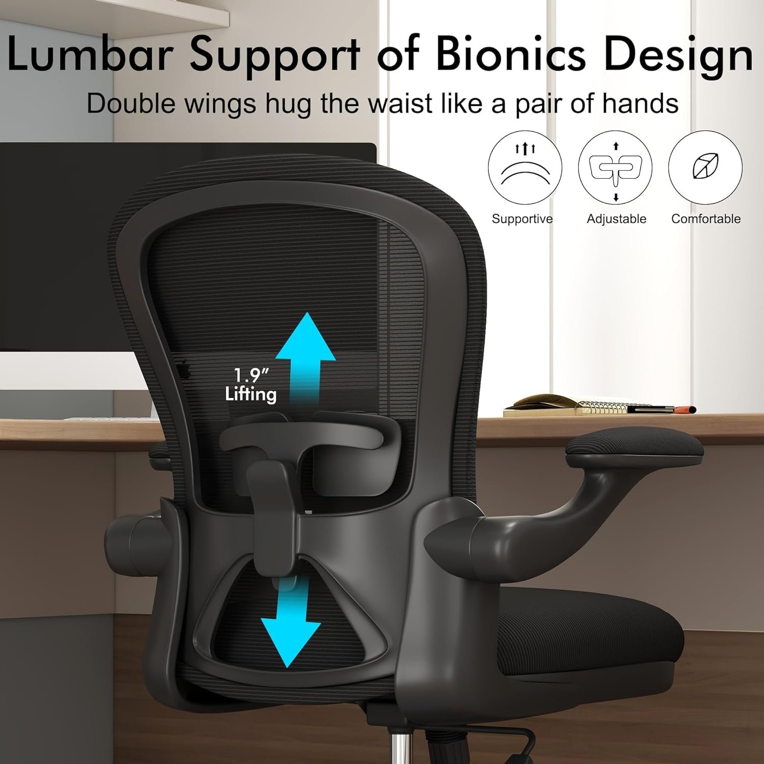 【Compty Chair】The office desk chair mesh backrest allows air circulation and better flexibility, keeping you cool even on the hottest days. The desk chair thick foam cushion provides a soft and comfortable sitting experience, while the adjustable up and down lumbar support ensures that your back is properly adjusted.