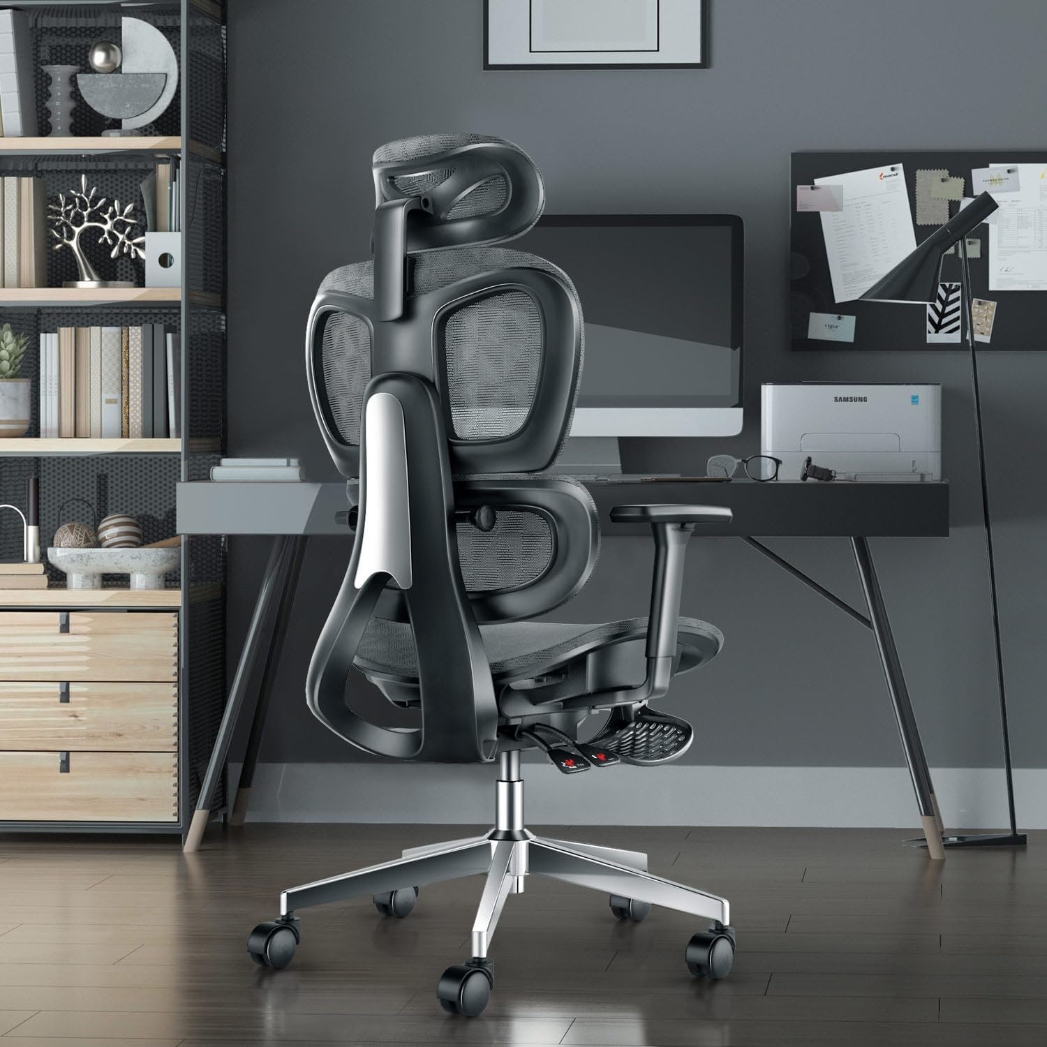 【High-quality Materials】The desk chair is made of high-elastic special soft mesh.Highly breathable in mesh and highly durable in strength make the computer desk chair good for sitting for 10 hours or more.The footrest uses steel plate material to ensure the safety of the chairs and the comfort of the experience. With a maximum tilt of 135°, you can choose the right angle for your office hours or nap time.The base provide a strong bearing capacity max to 440lbs.