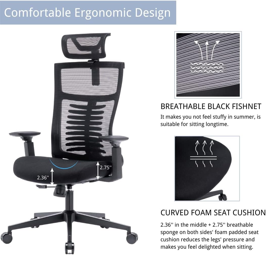 【Easy Assembly】The high back mesh office chair is undoubtedly easy to assemble, assemble instructions,all hardware and necessary tool can be found in the box. It takes about 20 minutes to install this chair.(You can watch the installation video on product page).