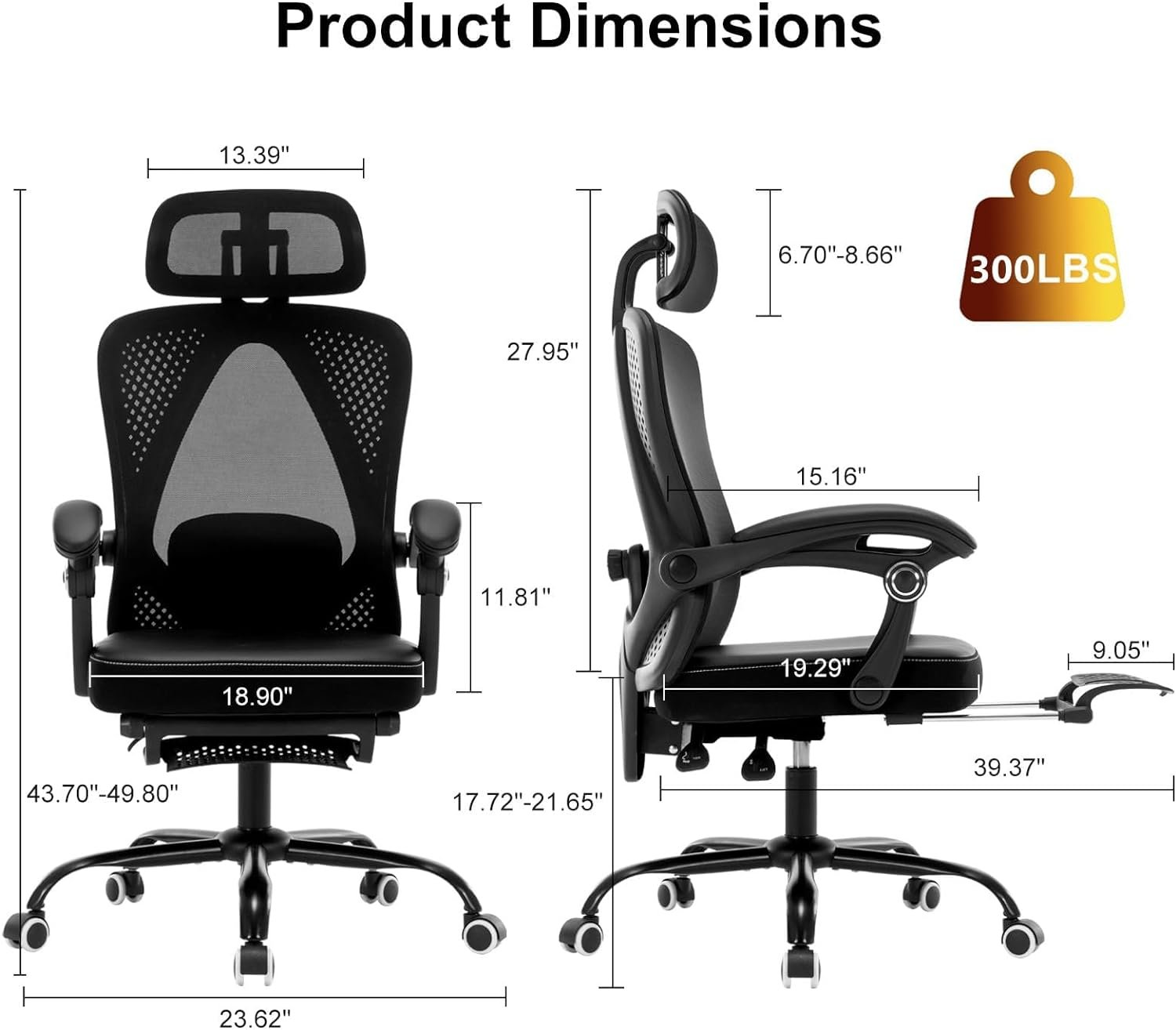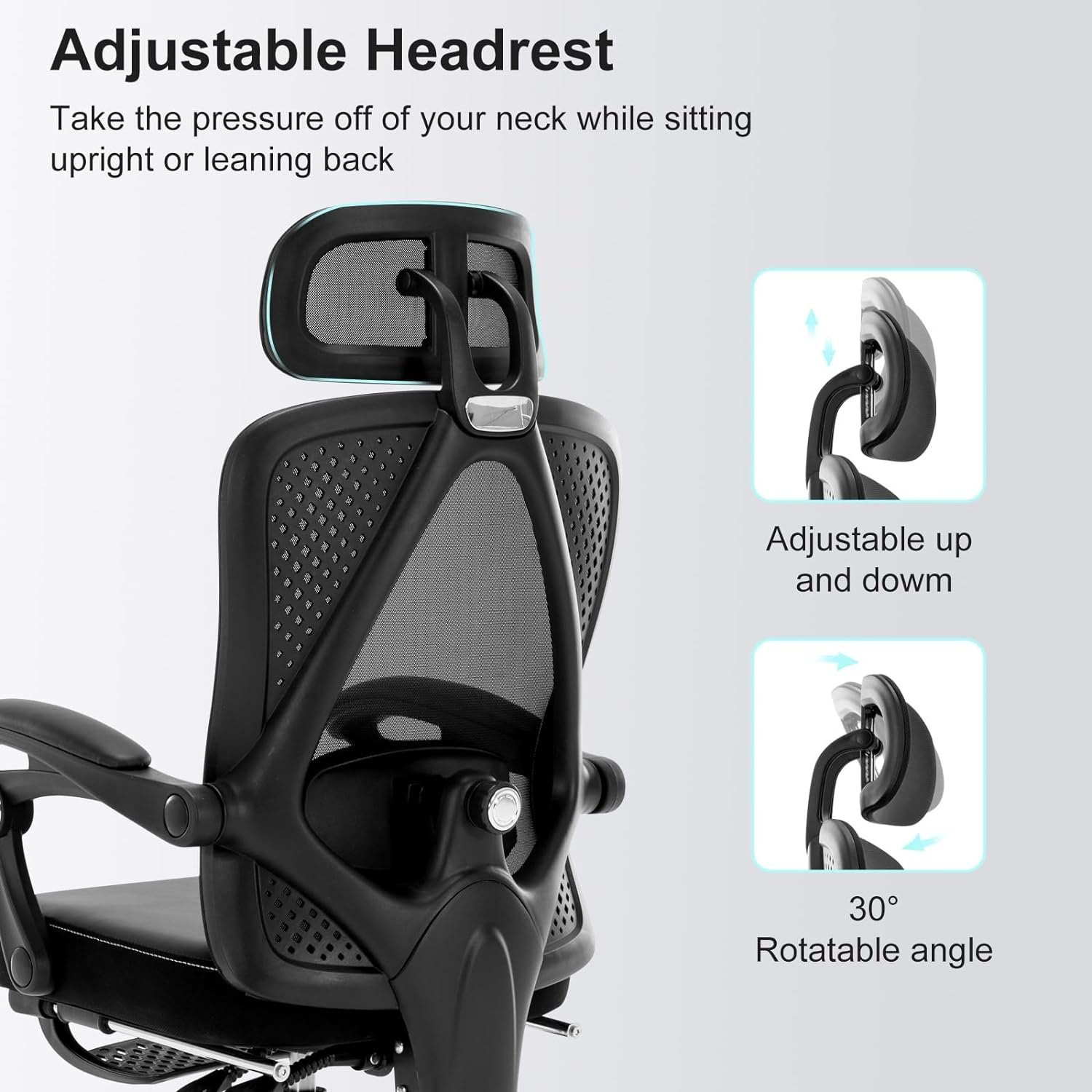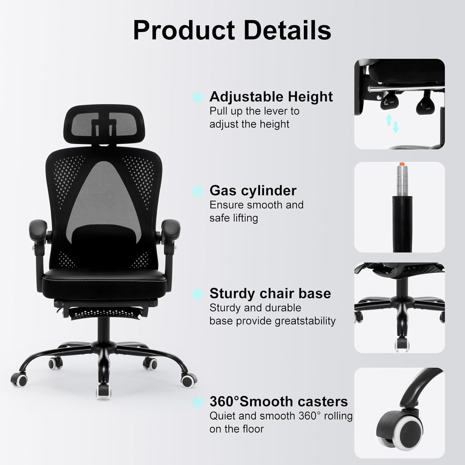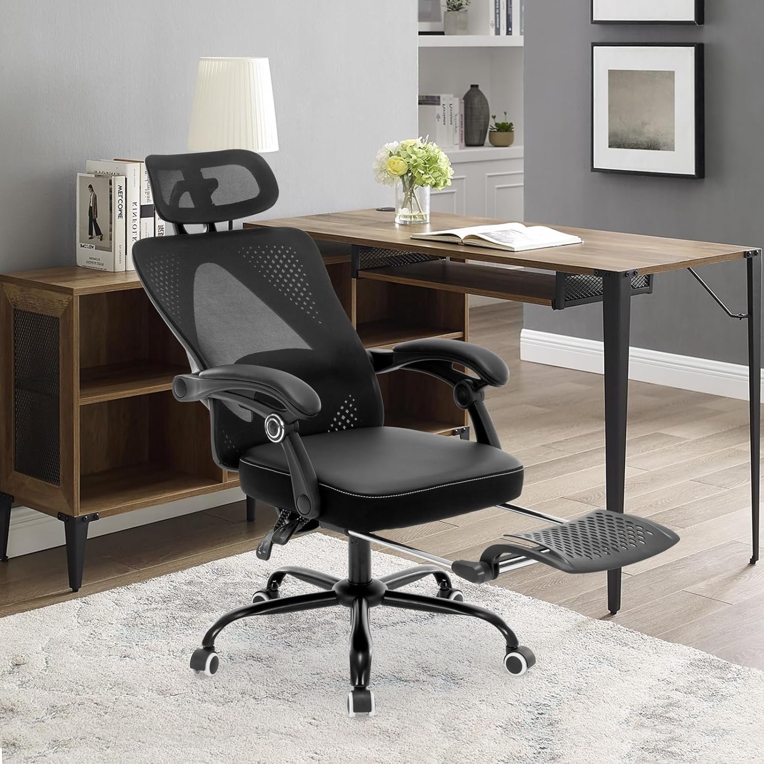 【Retractable Footrest & Adjustable Headrest 】This computer task chair is equipped with an adjustable headrest and retractable footrest. The ergonomic office chair’s headrest can be adjusted up and down, and the angle can also be adjusted to meet different needs to relieve neck pressure. The retractable footrest is located just below the seat, you can pull it out and relax your legs on the footrest.