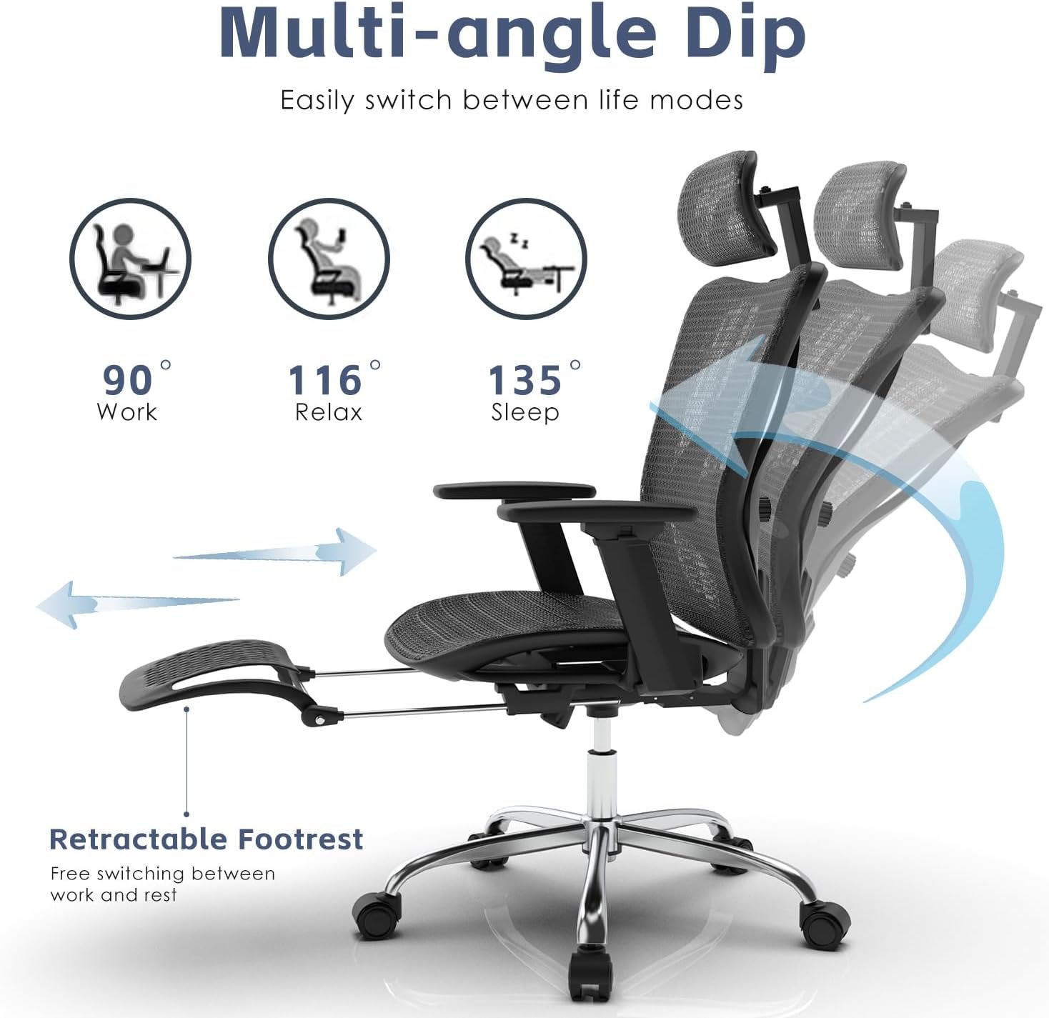 【Multi-angle Tilt】The backrest can be easily adjusted to various tilt angles, adapting to different sitting positions and postures. Computer chair equipped with an extendable leg rest, it allows for better freedom to switch between work and rest.