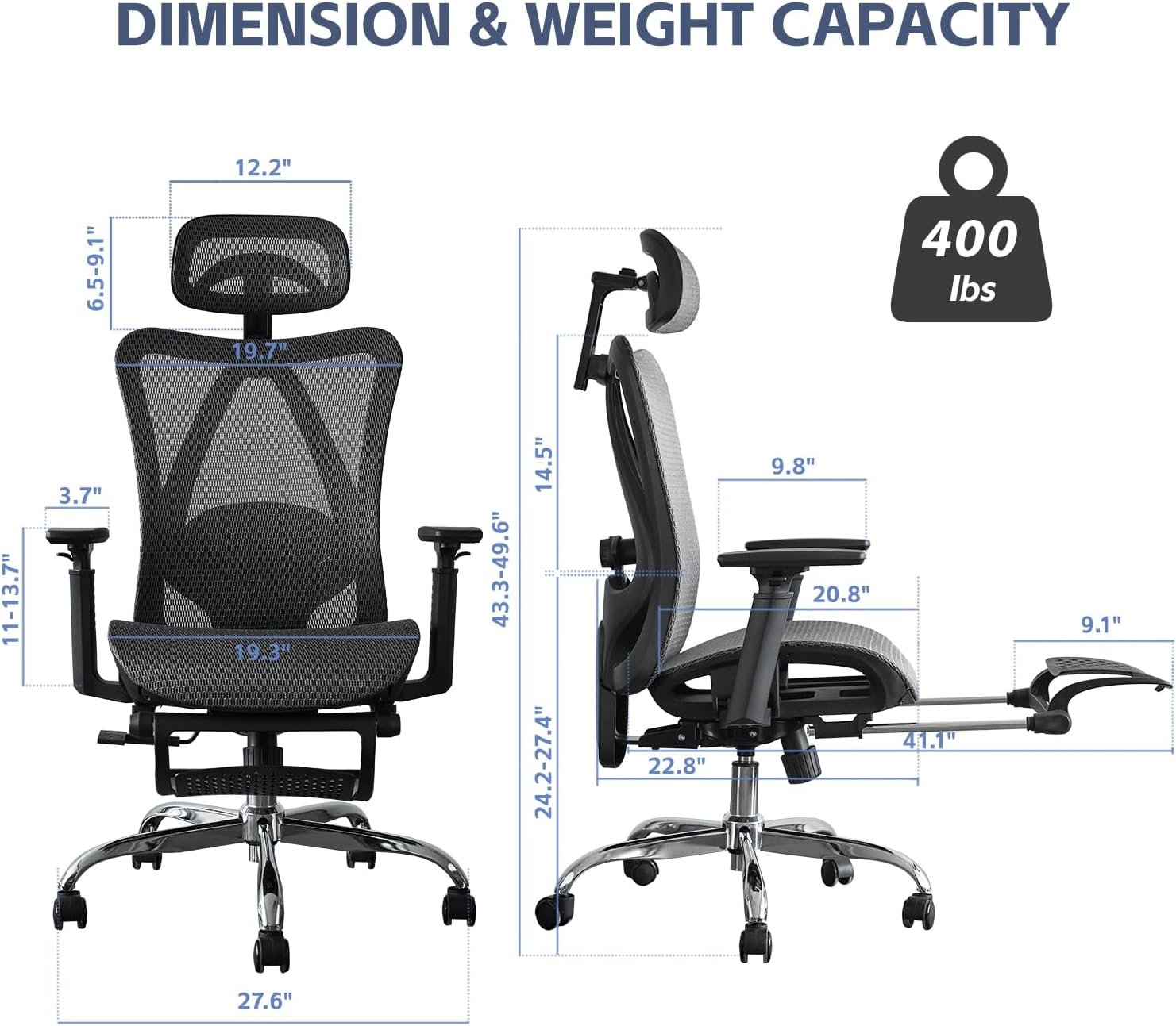 【Safety Certification】 Office chair has passed professional tests such as SGS, TUV, and BIFMA, so you don’t need to worry about the reliability of all components. The gas lift is explosion-proof and leak-proof, ensuring safe height adjustment. The base is made of high-strength metal, and the chair can easily bear a weight of 400 pounds.