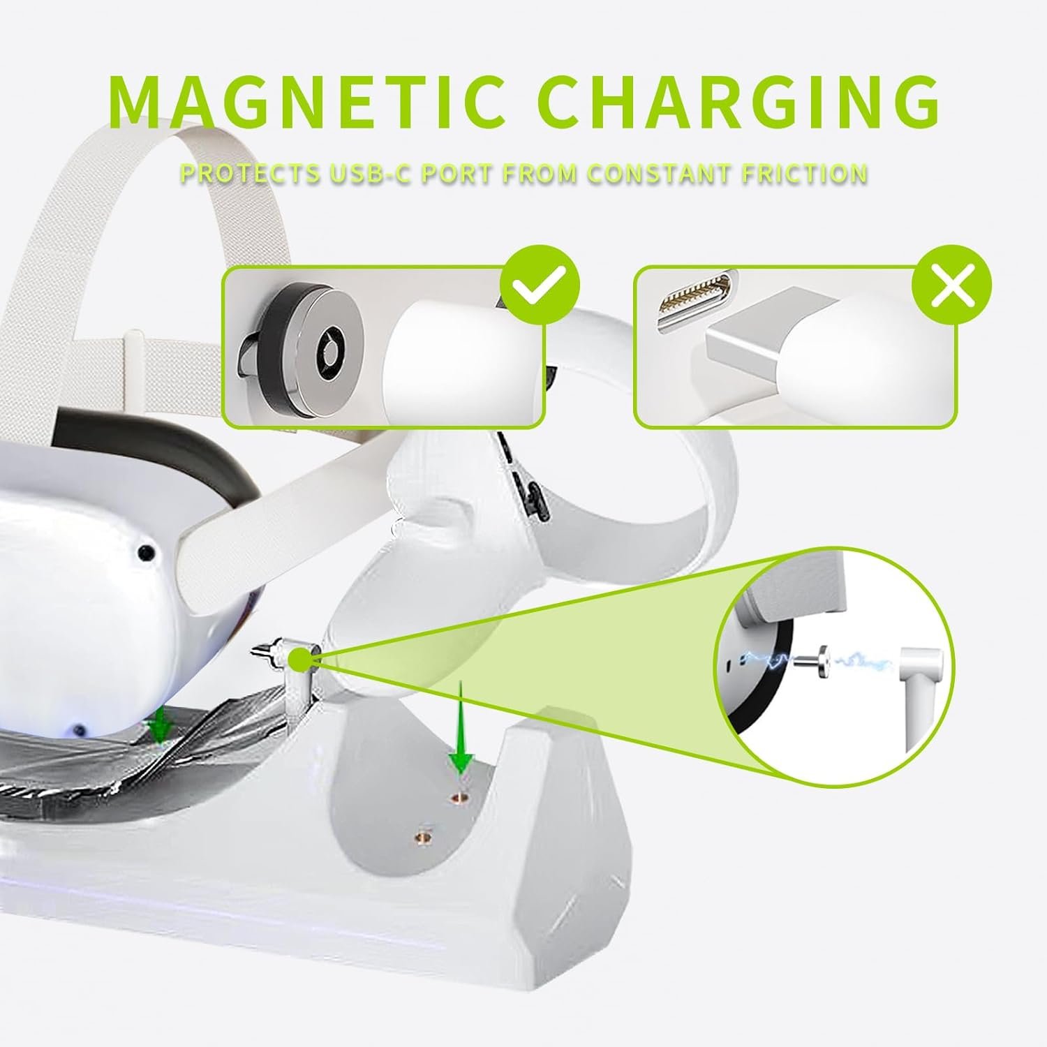 【Strong Magnetic Attraction Charging Design】The magnetic function to the controller charging, simply place your vr headset and controllers on the charging station to charge. Keep your playroom clean and organized. Say goodbye to tangled wires and cluttered gaming areas.