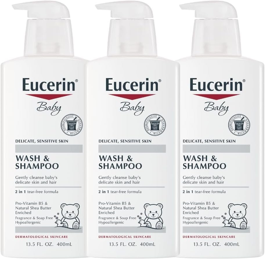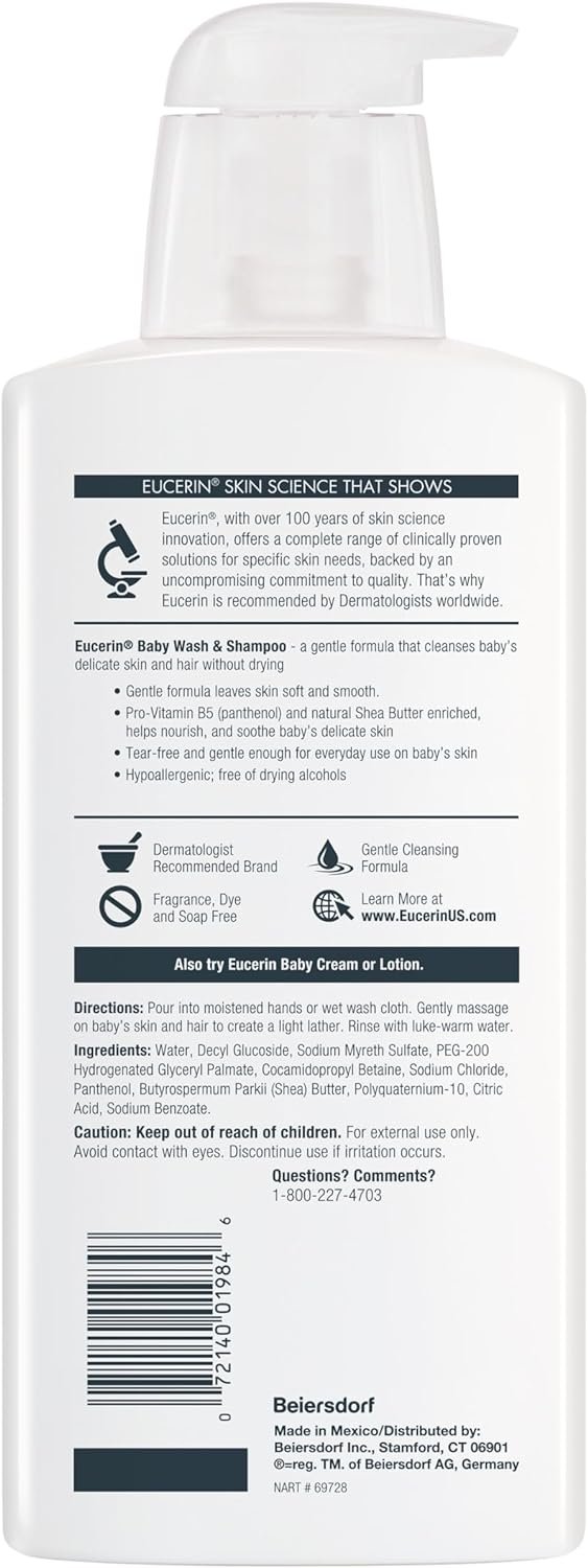 Enriched Baby Wash: Eucerin Baby Shampoo and Wash is enriched with Pro-Vitamin B5 and natural Shea Butter to help nourish and soothe your baby’s delicate skin and hair