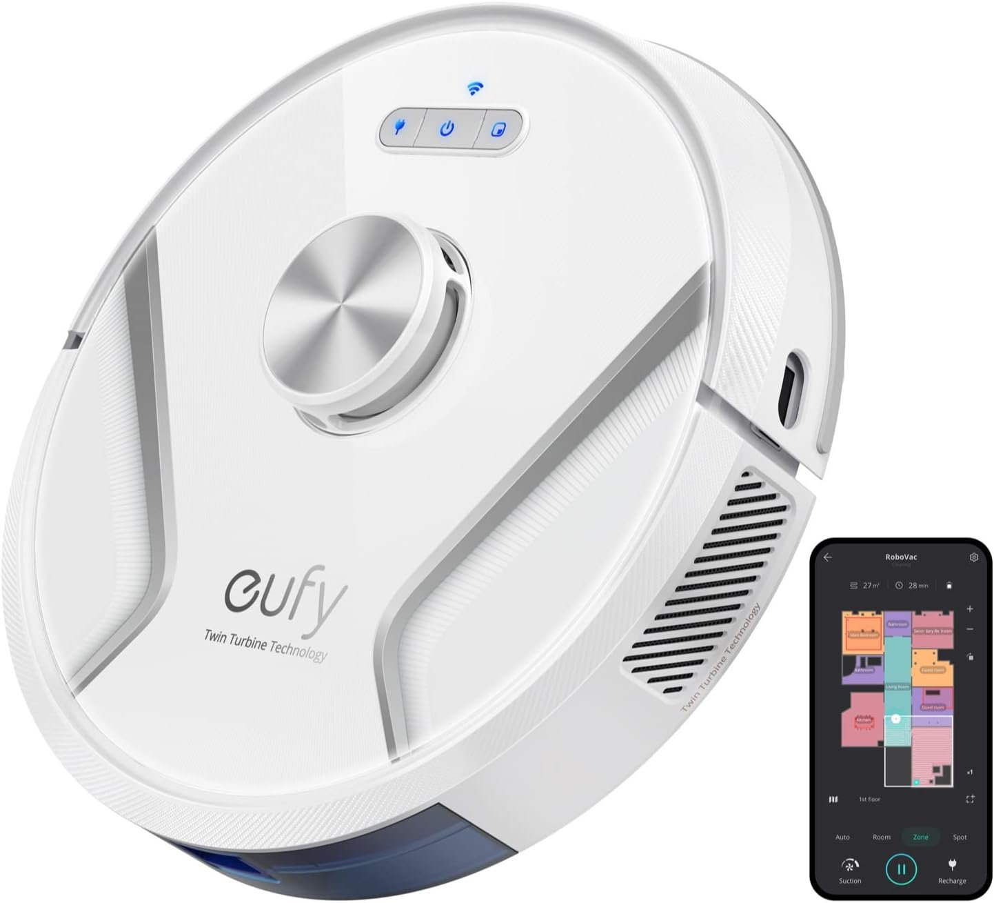 Twin-Turbine Technology: With each turbine generating 2000 Pa of suction power, RoboVac X8 creates up to 80% more airflow* to pick up more dust, debris, and pet hair from every corner of your house. *When compared to eufy´s single-turbine robotic vacuum.