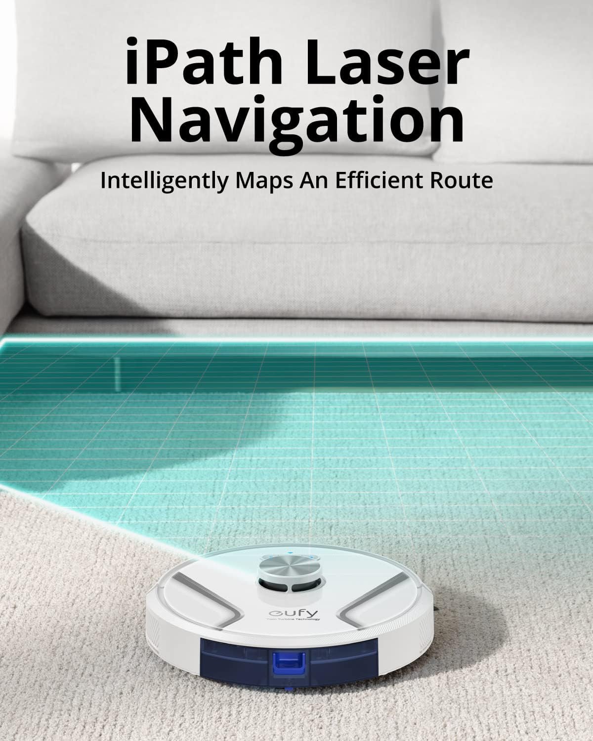 iPath Laser Navigation: Using advanced LiDAR technology, RoboVac X8 scans your home to intelligently navigate and avoid obstacles in real-time for more efficient cleaning throughout your house, even in low-light.