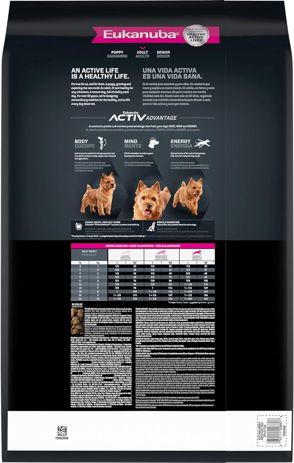 Eukanuba Adult Small Breed dry dog food is complete and balanced nutrition for small breed dogs over 12 months old and weighing up to 23 lbs.