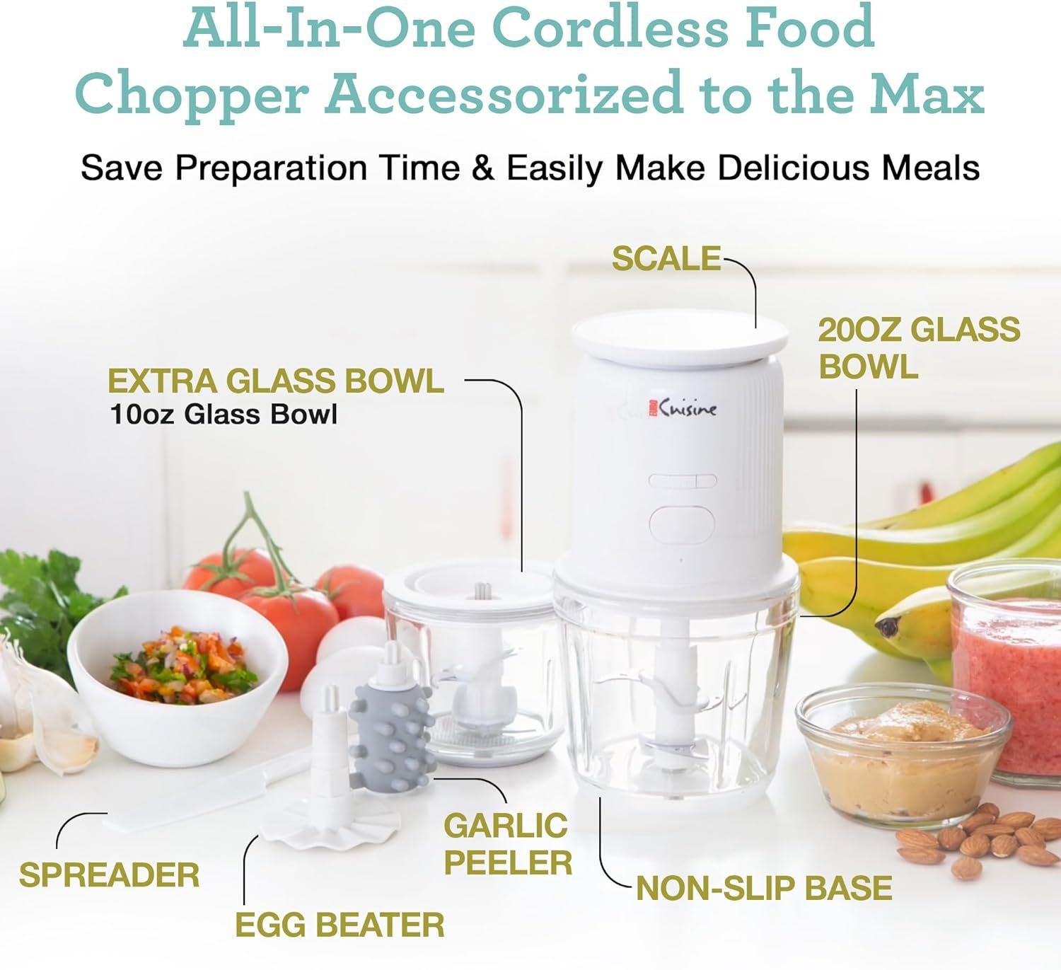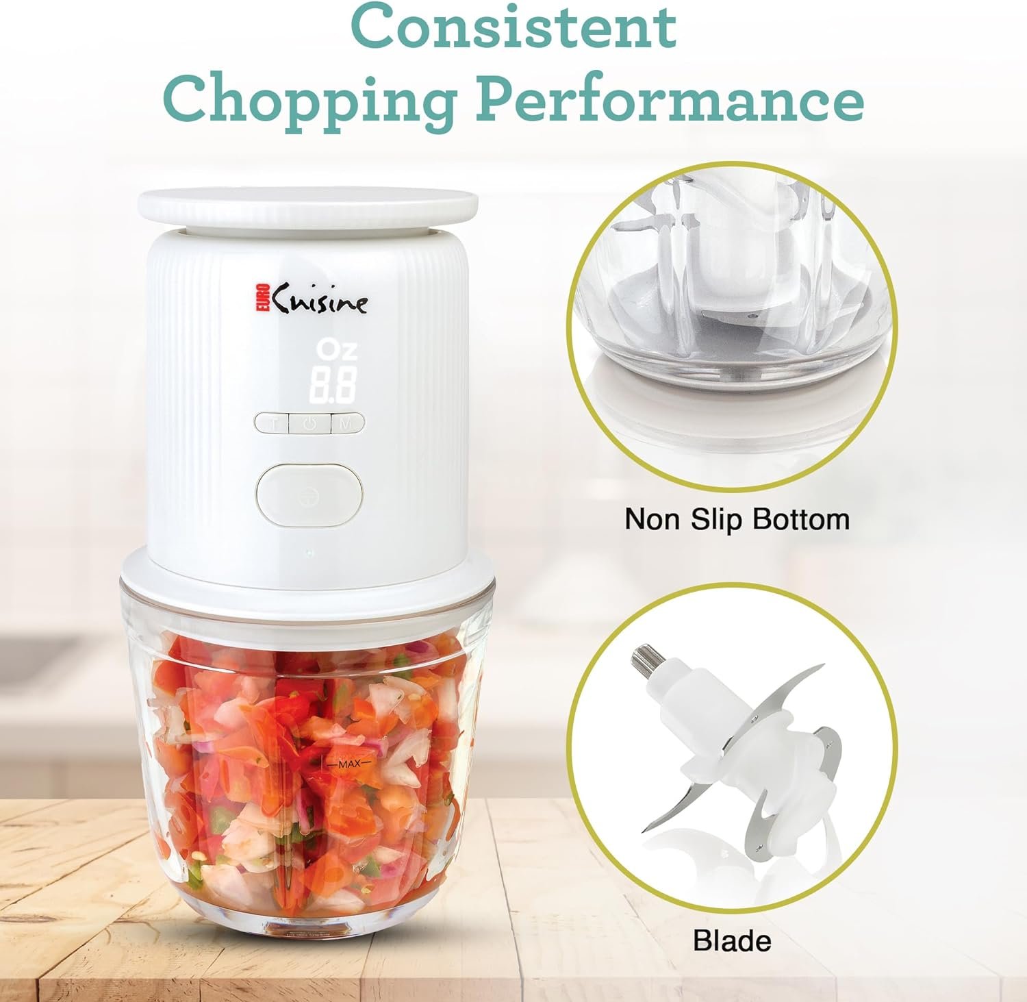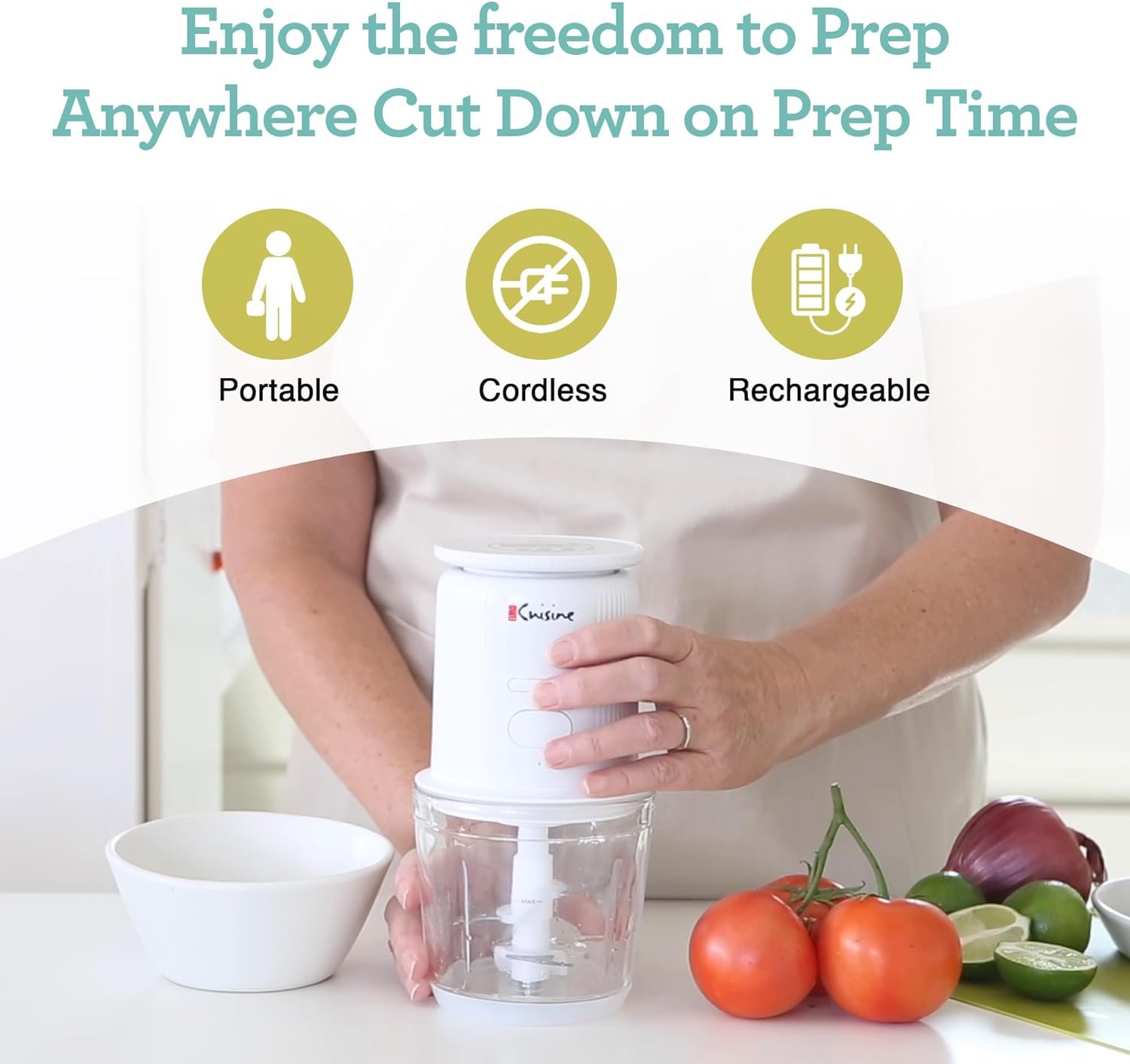 Untether your culinary skills with this rechargeable, portable chopper. Move freely around your kitchen or take it on the go; its USB charging feature ensures you’re always ready to whip up a meal, indoors or out.
