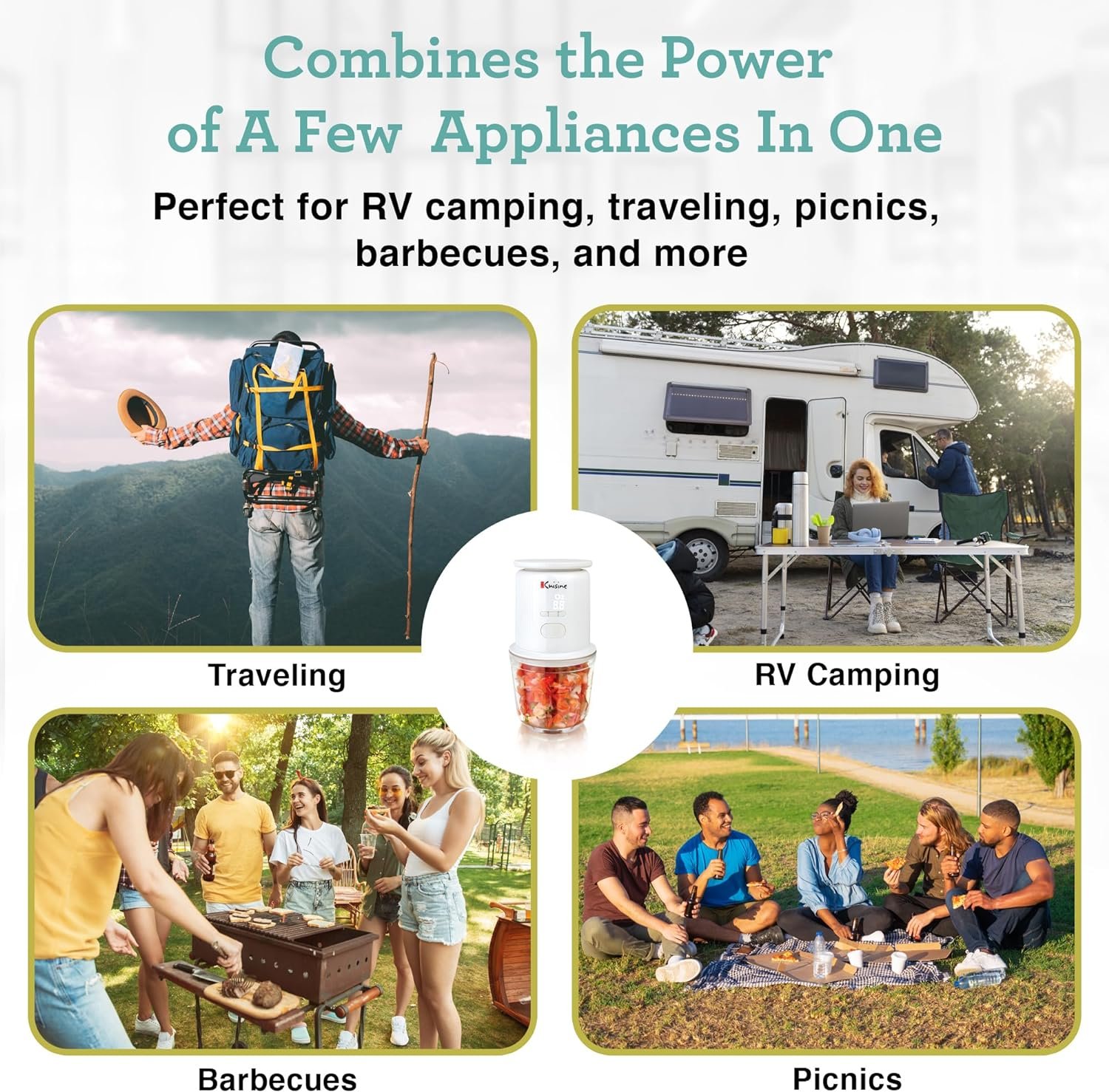 Portable, Cordless, Rechargeable – The wireless mini electric chopper features a USB charging design that makes it convenient for indoor and outdoor use. This portable food chopper is recharge via any USB power source with the included charging cable. Runs up to 20 minutes per charge depending on the load. No restricting wires, perfect for active lifestyles and travel use while keeping your nutrition on target
