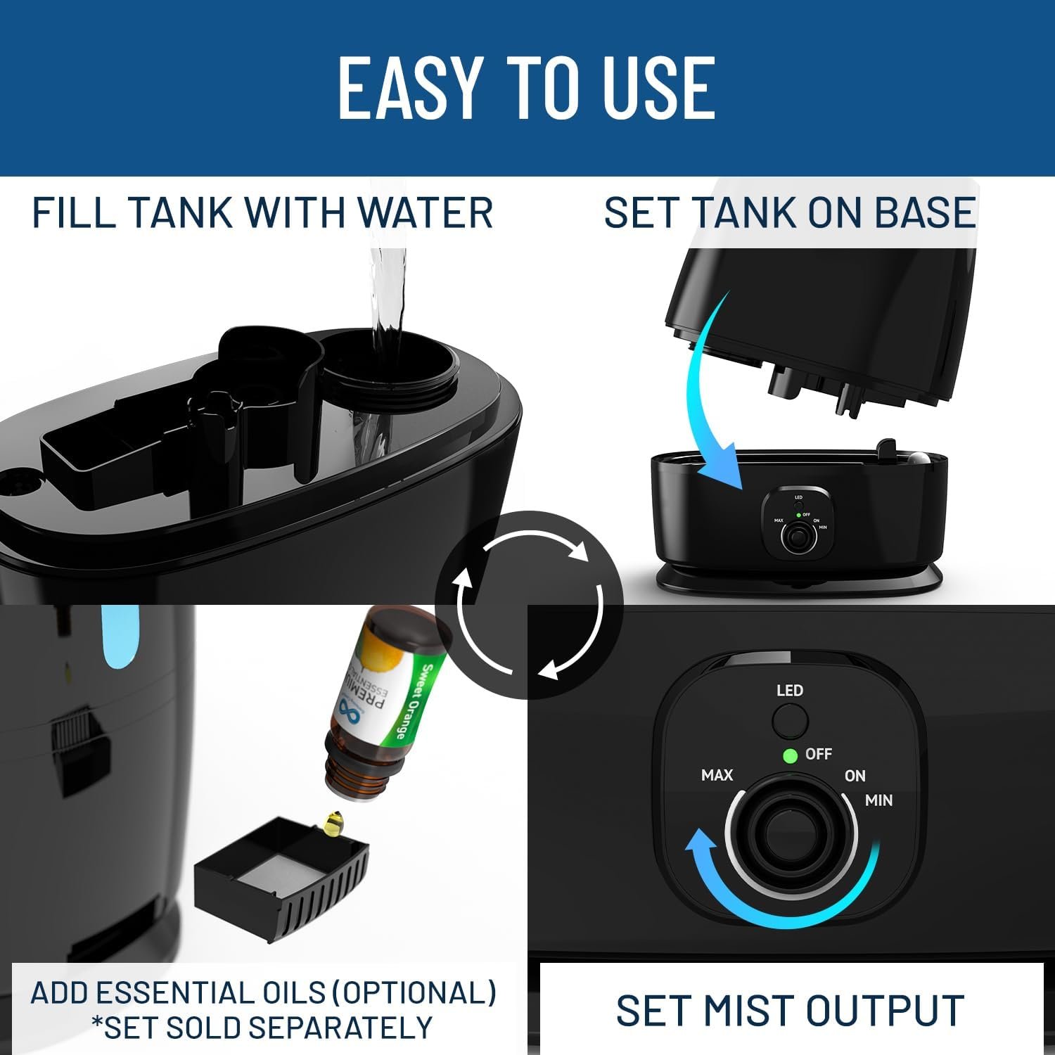 CONTINUOUS MOISTURE FOR 50 HOURS: Enjoy extended relief with our cool mist humidifiers, providing up to 50 hours of continuous moisture for a healthier living environment. Ideal for large bedrooms, kid’s rooms, nurseries, and living areas.