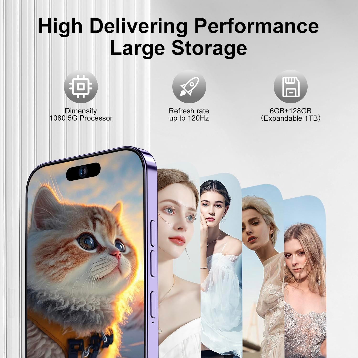 ★【Andorid 13 & 6GB+128GB】A14 Pro Max cell phone runs smoothly with up to 6GB RAM. Install favorite apps, memorable photos and videos with 128GB storage and extra 1TB expandable.