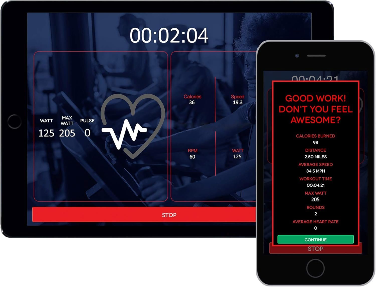 High Visibility Backlit LCD Computer with a Free MyCloudFitness app available on Android and iOS to track your workouts via your mobile devices. Automatically save your workouts to our MCF ecosystem.