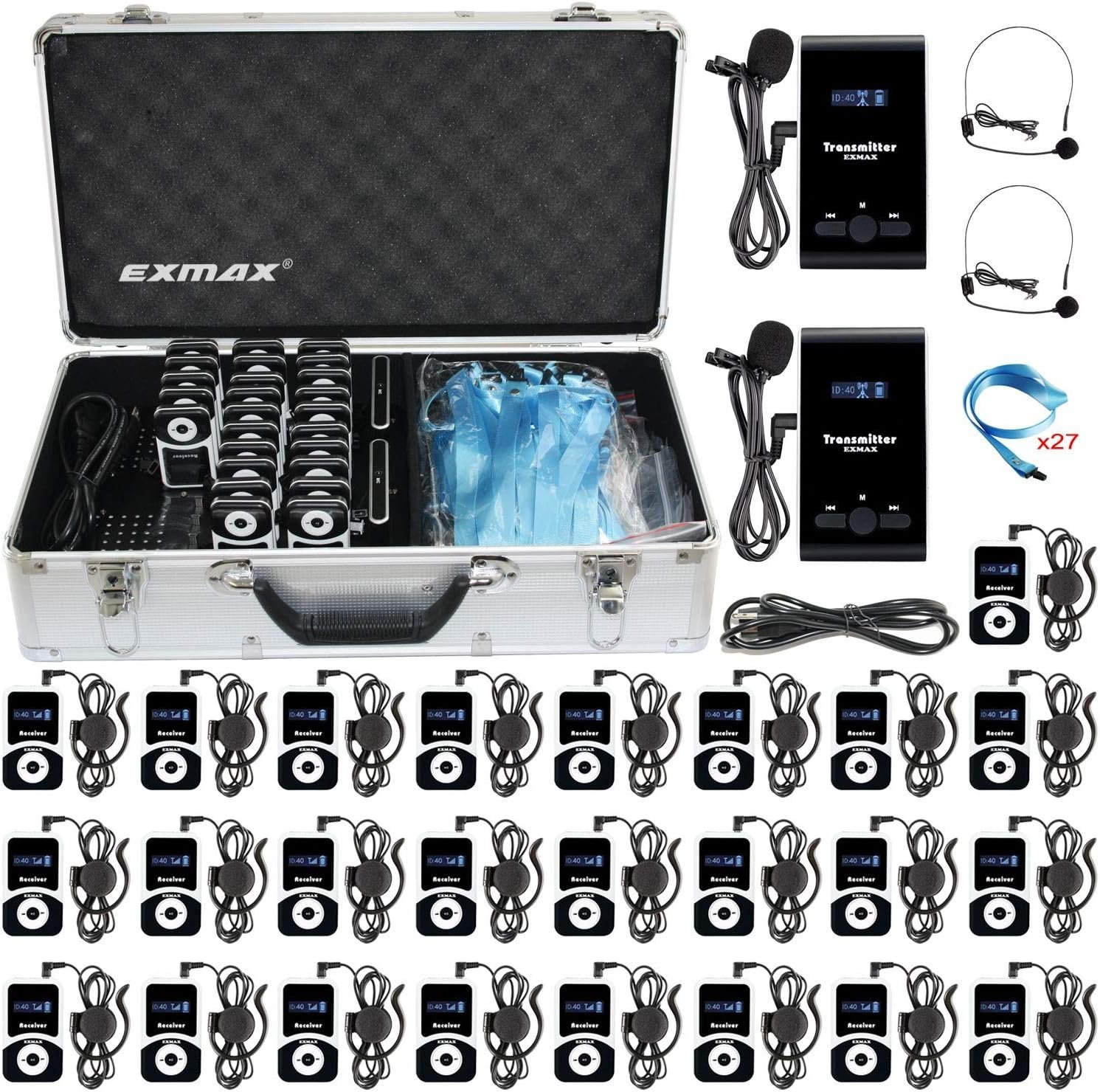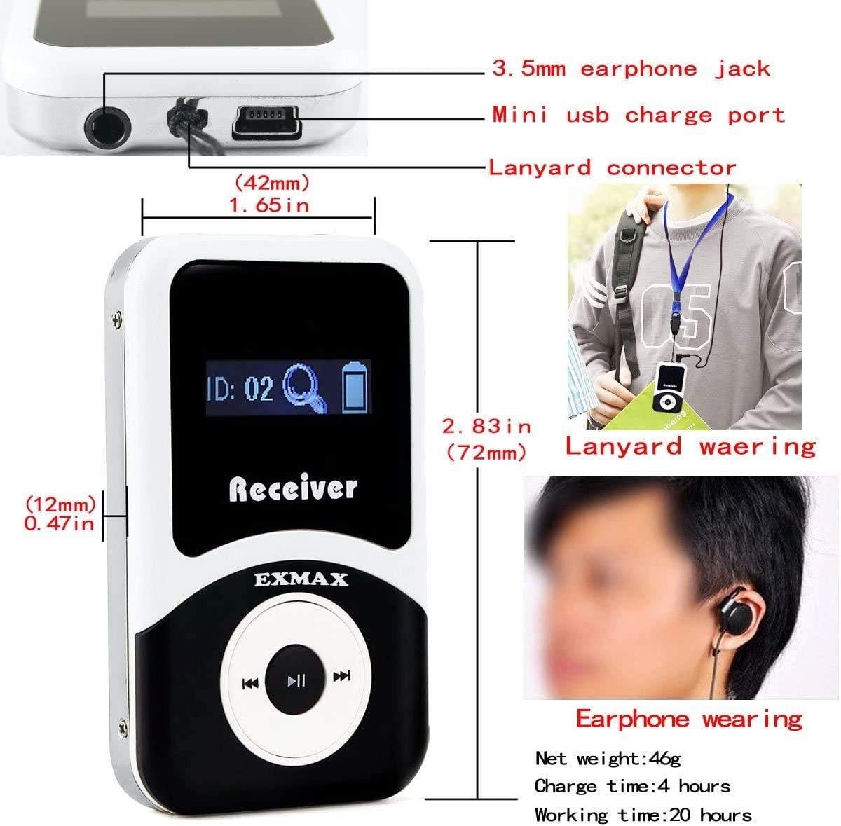 ✤【99-CHANNEL SYSTEM ALLOW YOU TO SCHEDULE AT LEASE 40 TOURS AT A TIME】EXMAX wireless audio transmission system enhances communication between the tour guide and group members and helps overcome background noise and distance from the tour guide.Multi-channel systems on 195MHz-230MHz it has 99 select channel IDs allow you to schedule at least 40 groups to work simultaneously.The system can be used in factories, museums, tourist attractions,or bus tours.Group members have listen-only capabilities.