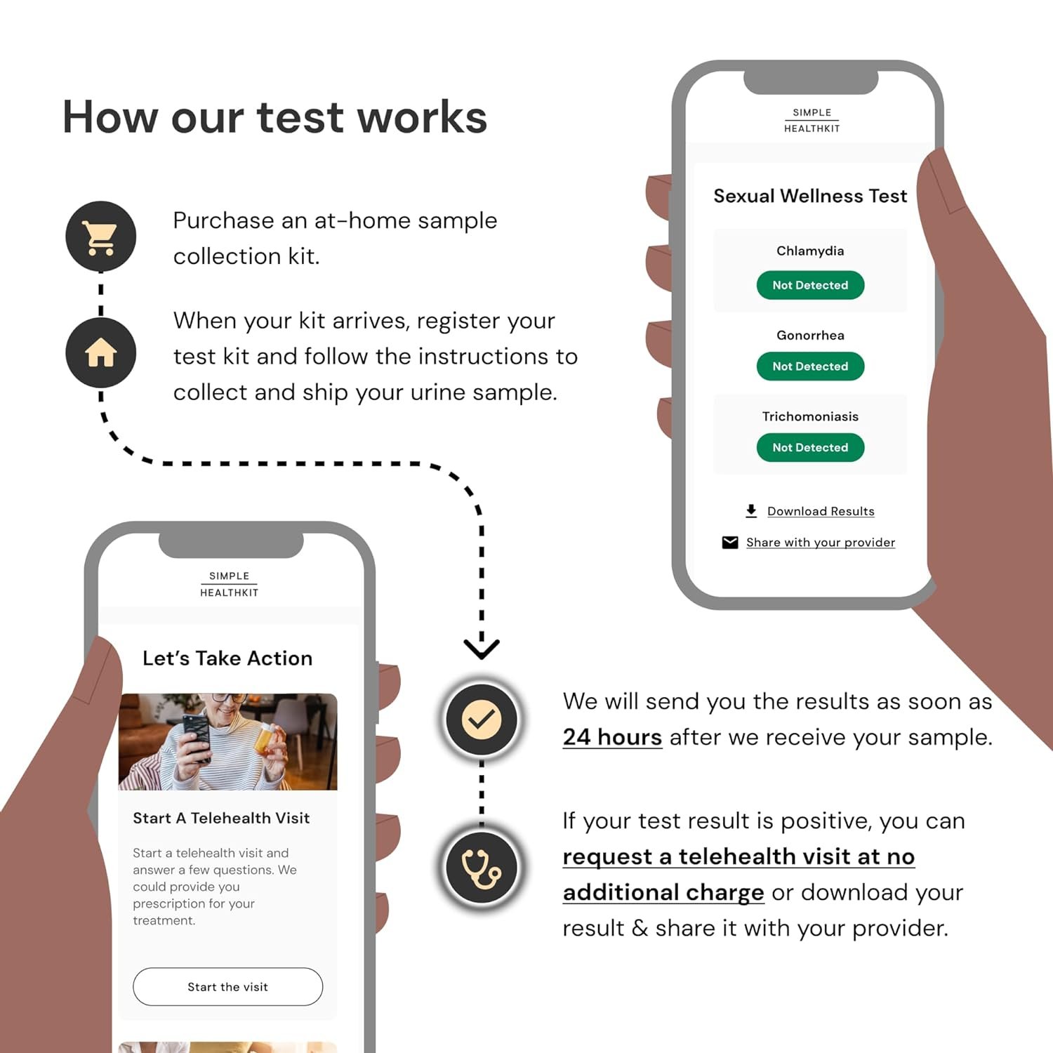 Tests for 5 STD’s: An easy-to-use Expanded STD test with simple, fast, and private results. Simple HealthKit’s Expanded STD Test screens for 5 STDs/STIs: Chlamydia, Gonorrhea, Trichomoniasis, HIV, Syphilis