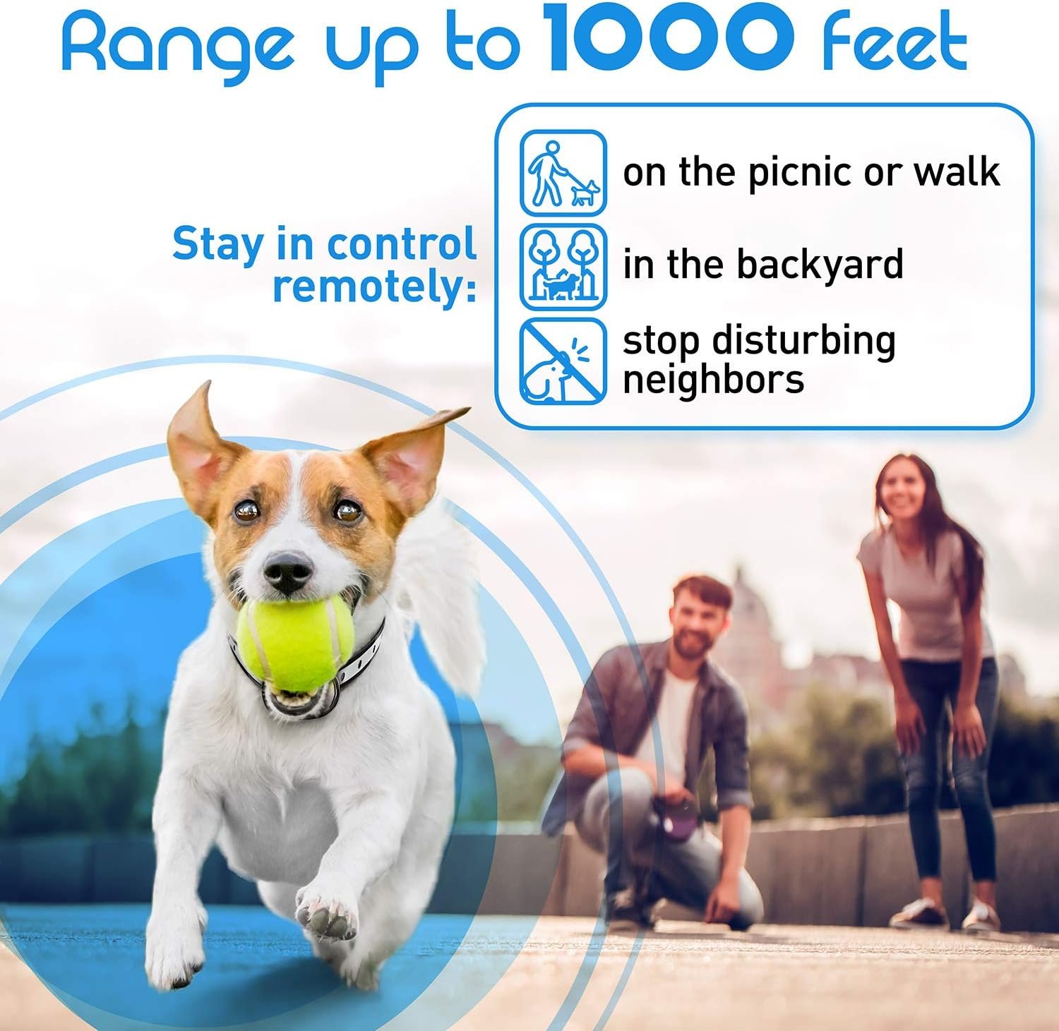 Positive Behavior Reinforcement – A complete dog training system with sound and vibration modes included. Reinforces positive habits and long lasting behavior change. Perfect for outdoor or indoor use. Increased range of 1000 feet