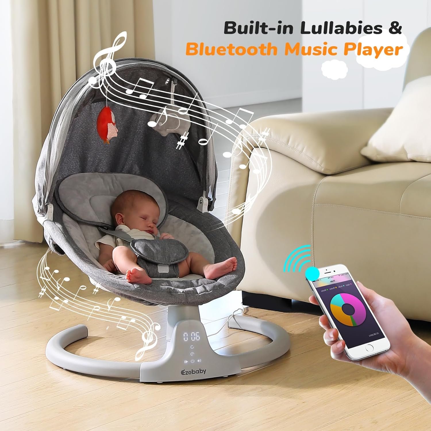 [5 swing amplitudes, 3 adjustable reclining, lullabies, and Bluetooth connectivity] Our electric baby swings for infants offers a range of smart functions that allow for easy customization to meet your baby’s preferences effortlessly, and to soothe and calm your little one.