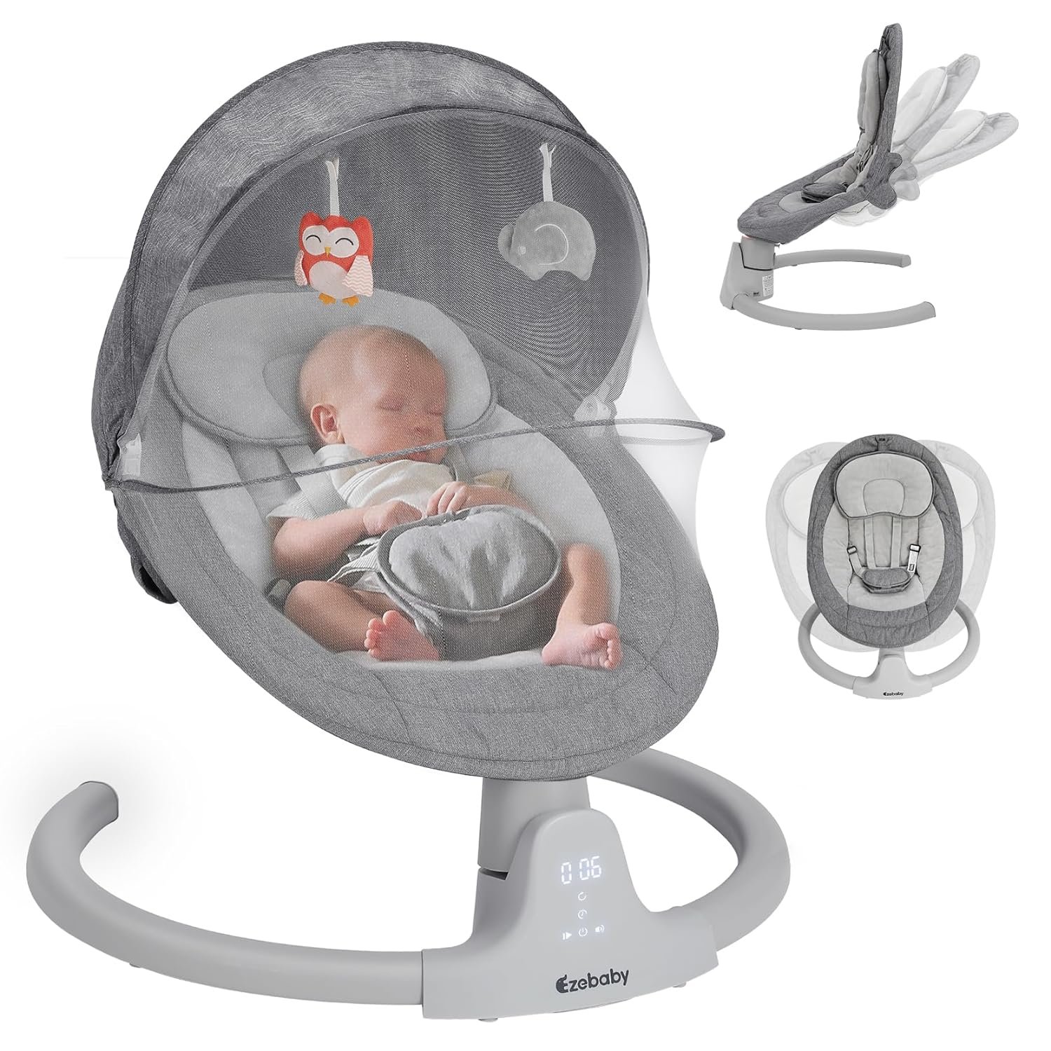 [3 Timing Setting& Auto-off Timer]: The Ezebaby swing for baby is equipped with a timer. There are 3 swing time options (8.15.30 minutes), and it will automatically stop working when the time is up.
