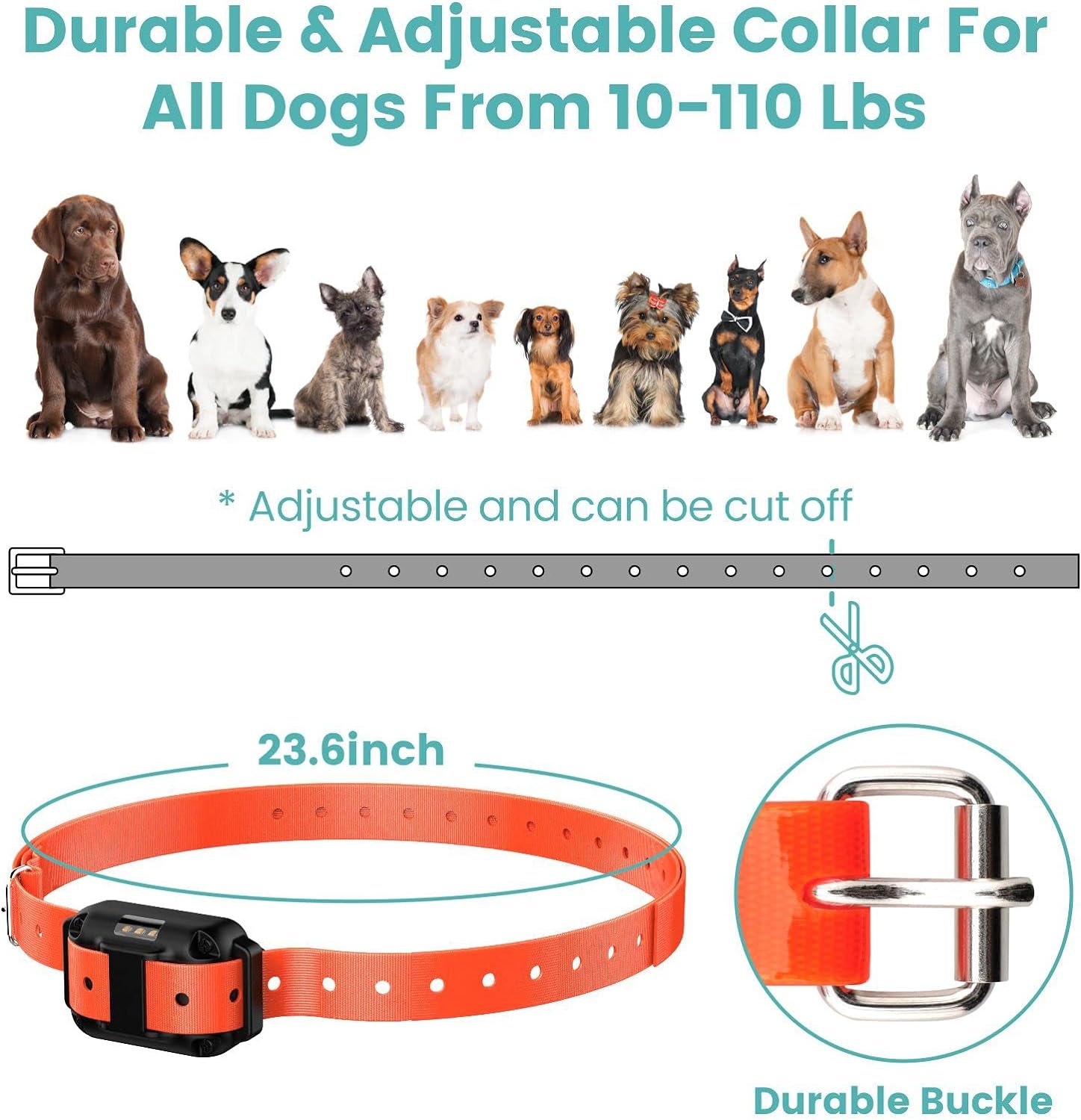 【Size Adjustable Collar Fits All Sizes Dogs】 The Pet Training Collar Strap Fits Neck Size from 7.1 to 25.6 inch, Perfect for Medium and Large Dogs above 20Lbs. Soft Silicone Contact Points are Safer and More Comfortable than those with Metal Points, Avoiding Skin Damage