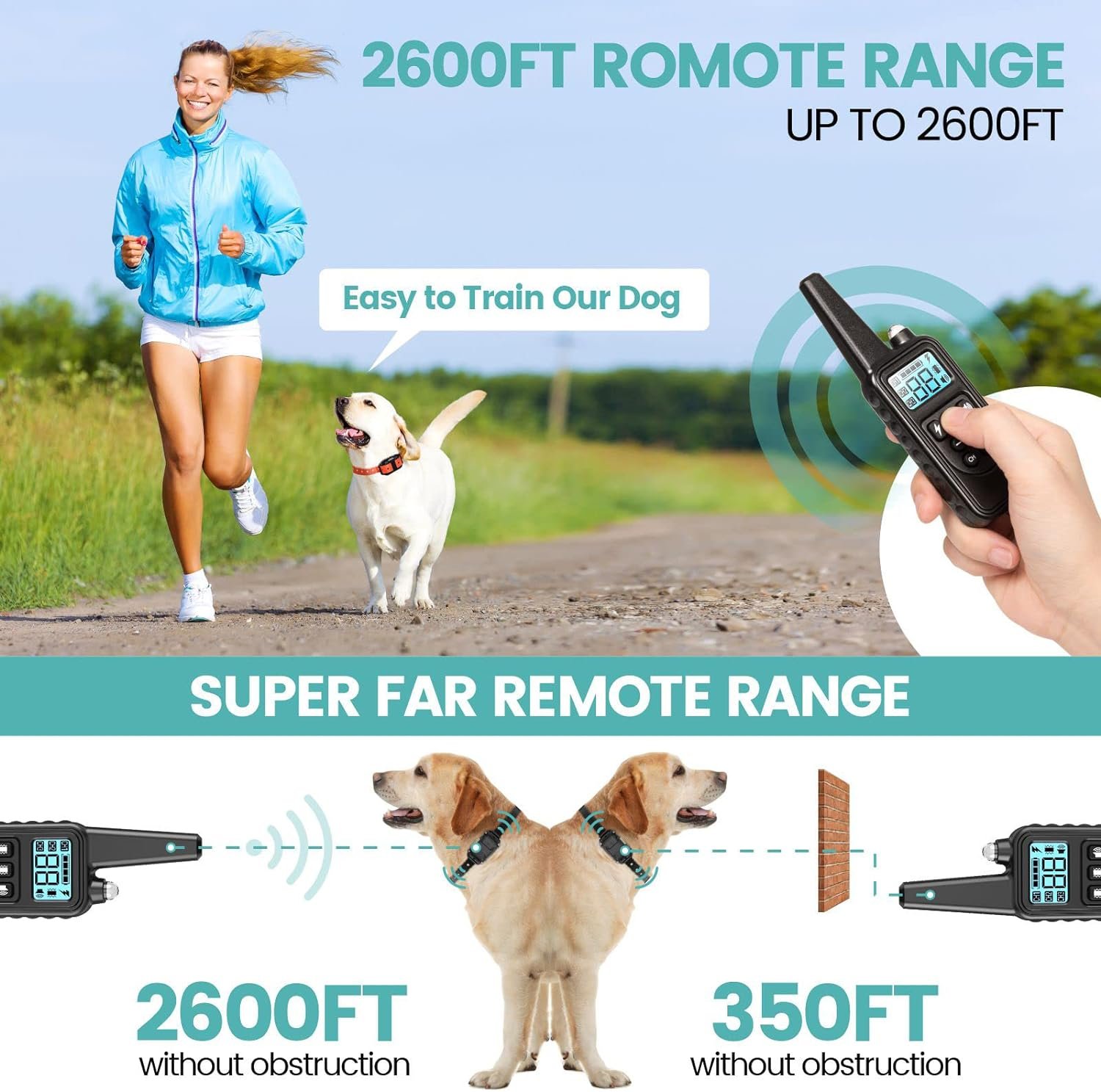 【Longer Remote Range】3 Dog Shock Collar with Remote Range up to 875 Yards (2600Ft) Allows you to Train your Dogs Easily indoors/Outdoors, The Transmitter can Control up to 3 Collar Receivers