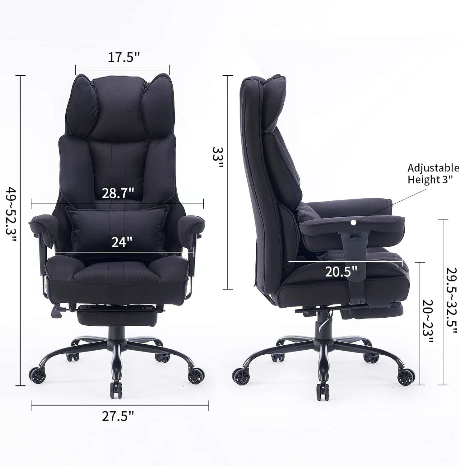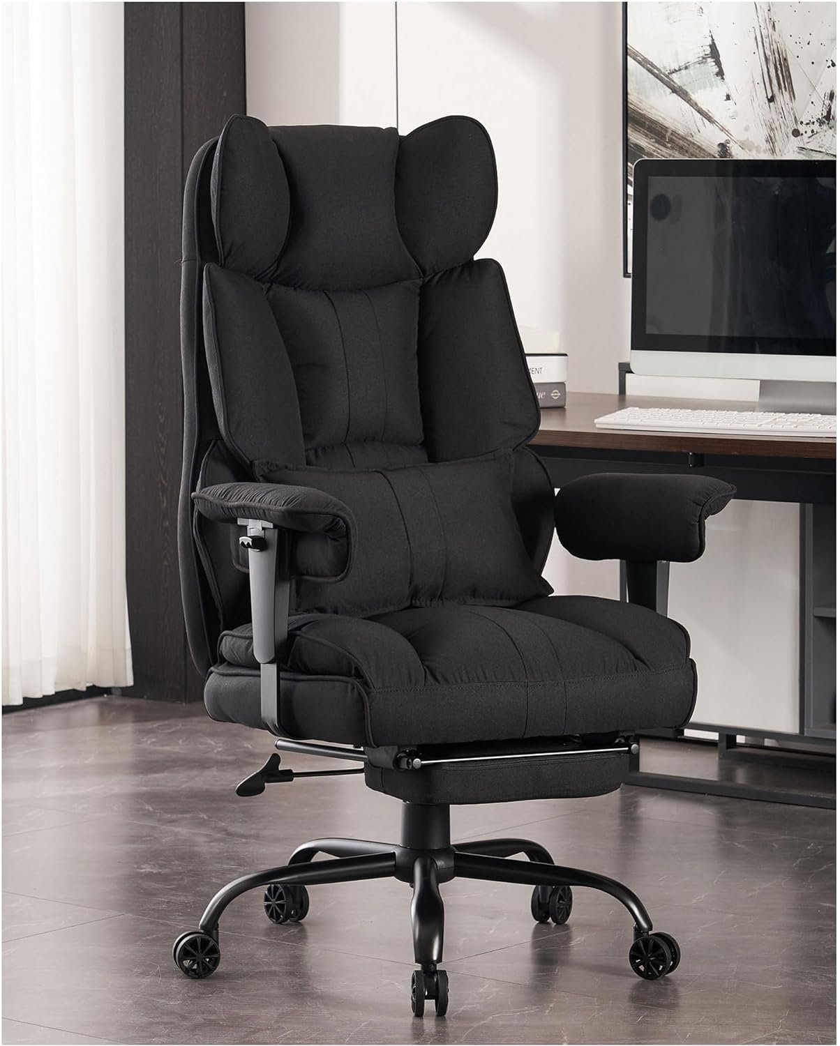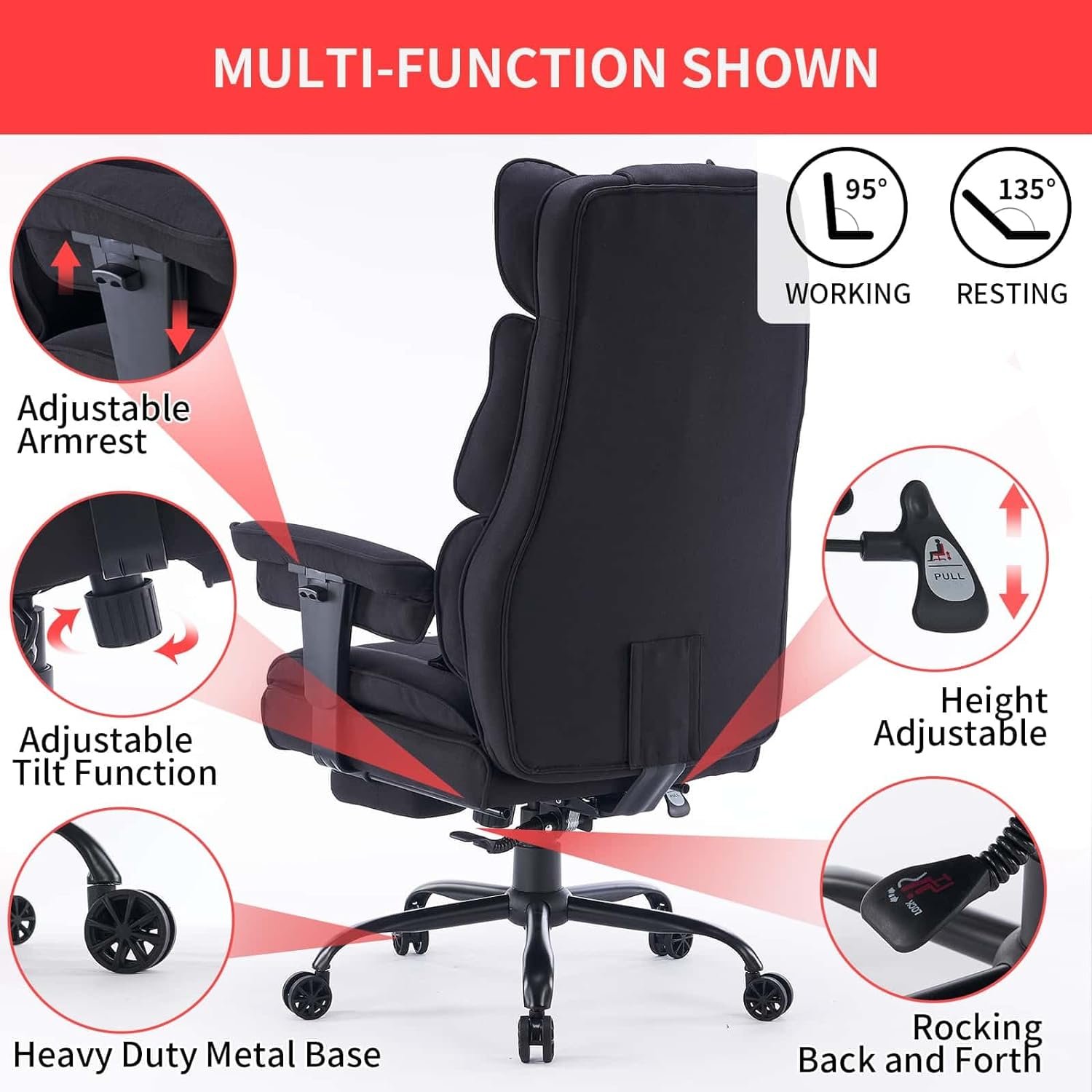 Ultimate Relaxation with Reclining Function: Unwind and relax with the extra wide chair advanced reclining function. Easily adjust the backrest tilting angle up to 135 degrees and enjoy the comfort of the soft-padded retractable footrest. Whether you’re working, gaming, or taking a quick nap, this reclining desk chair offers the perfect blend of support and relaxation