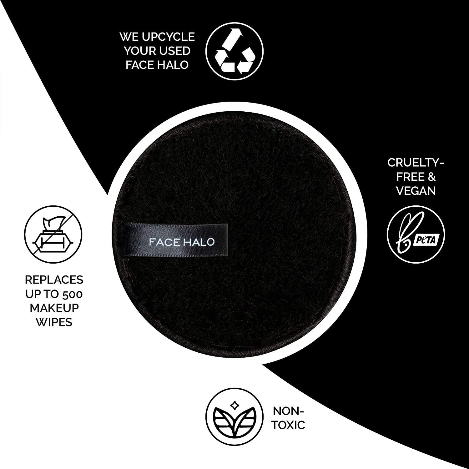 Face Halo Reusable Makeup Remover Pads, No Product Needed | Gently Removes Makeup With Just Water, Ultra-Soft, Eco-Friendly, Non-Toxic, All Skin Types, Replaces 500 Single-Use Wipes | Pro Black 3-Pack