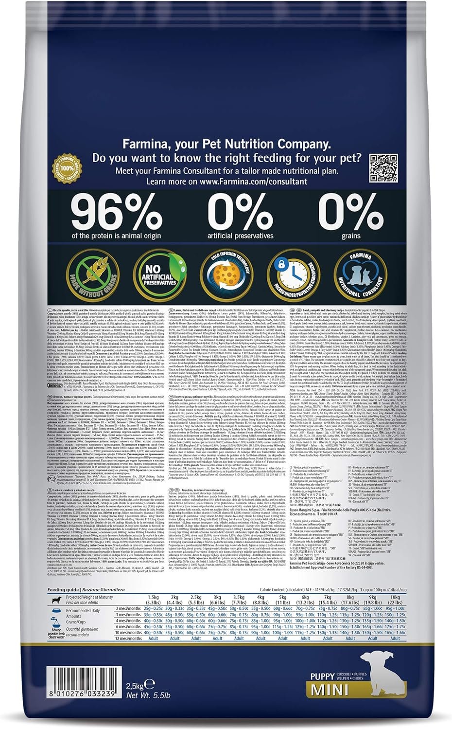 FARMINA Dry Mini Puppy Food, Lamb, Pumpkin and Blueberry Recipe, 5.5 lbs