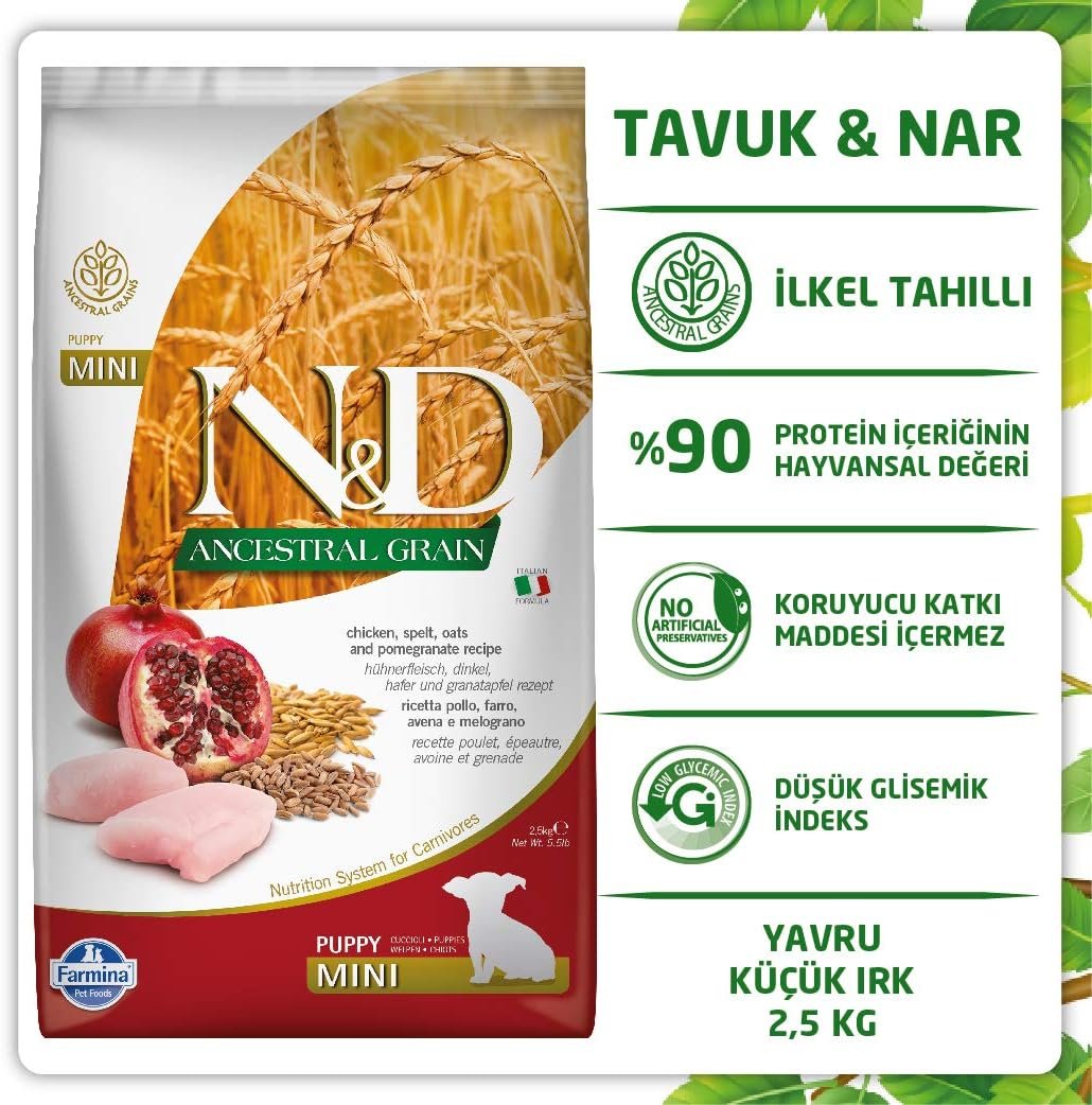 Farmina N&D Chicken & Ancestral Grain Recipe for Puppies is formulated to meet the nutritional levels established by the AAFCO Dog Food Nutrient Profiles for all life stages.