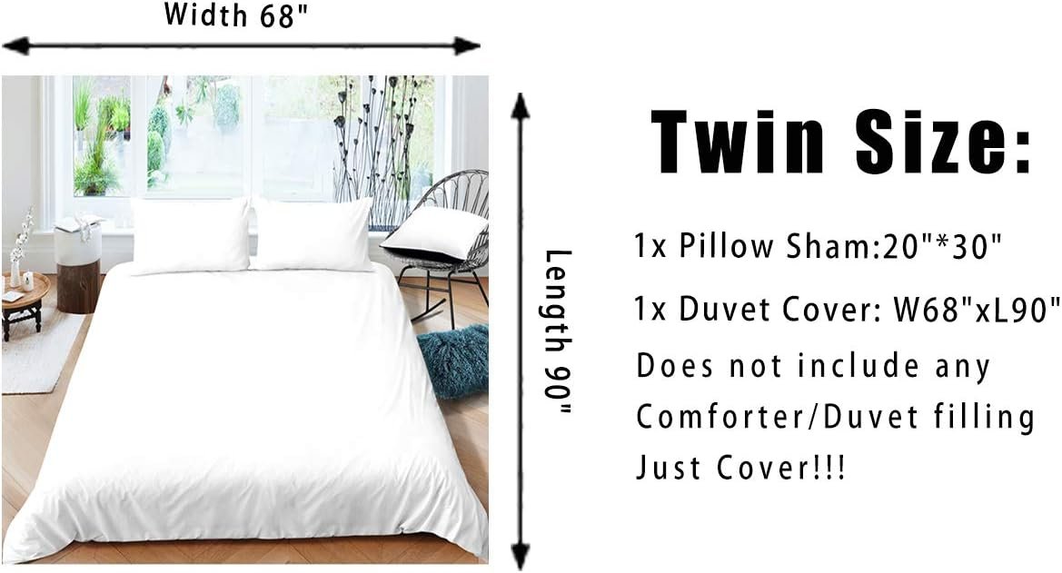 ▸ 【Size】Twin bedding (1x Duvet Cover: 68″x90″+1x Pillow Sham:20″*30″)//Full bedding (1xDuvet Cover 79″*90″+2xPillow Shams 20″*30″ )//Queen bedding (1xDuvet Cover 90″*90″+ 2xPillow Shams 20″*30″ )//King bedding (1xDuvet Cover 104″*90″+2xPillow Shams 20″*36″). COMFORTER IS NOT INCLUDED.