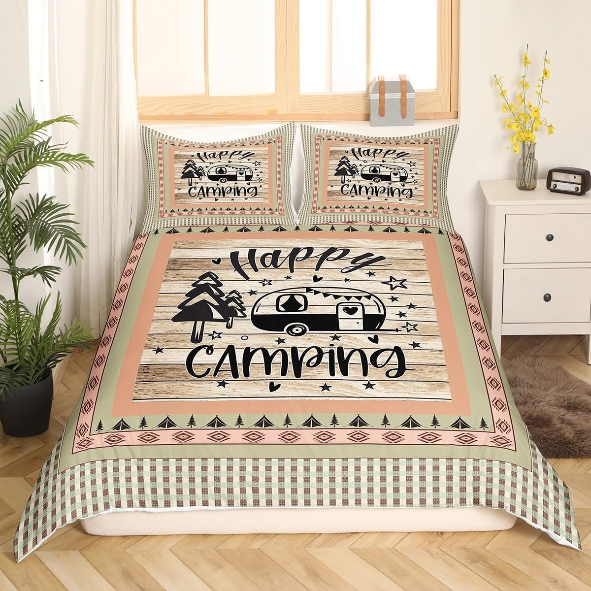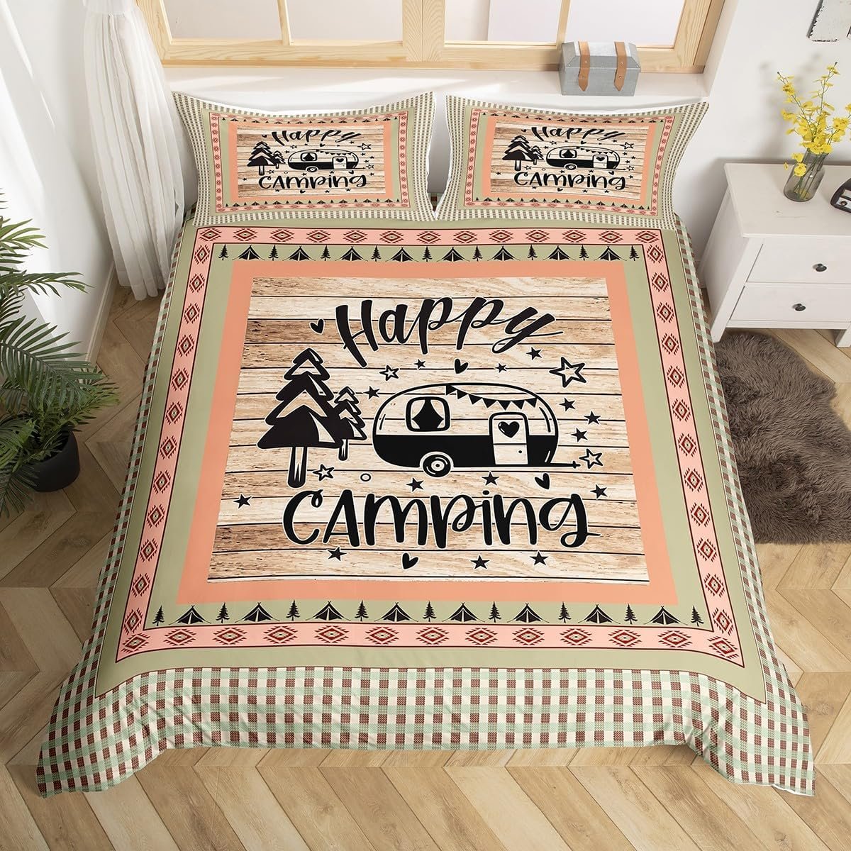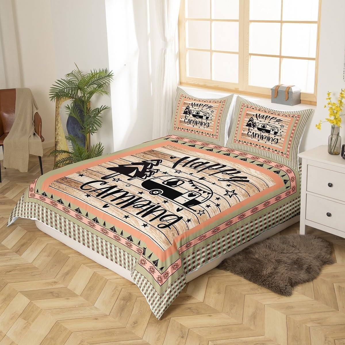 Be the first to review “Feelyou Camper Bedding Set Full Size Kids Happy Camping Comforter Cover Set for Boys Southwestern Camper Accessories for Travel Trailers Wood Grain Vinatge Duvet Cover Orange Tree Bedspread Cover”