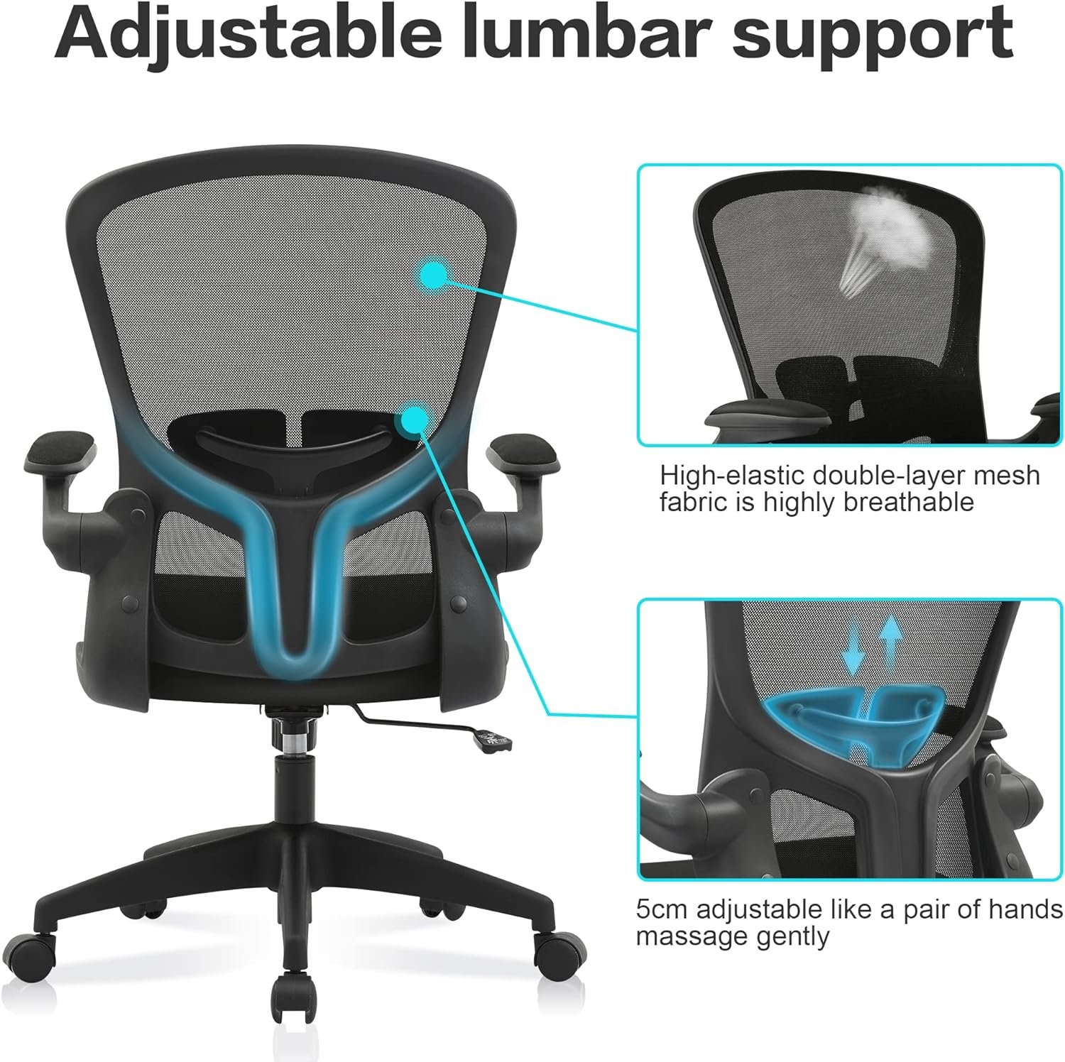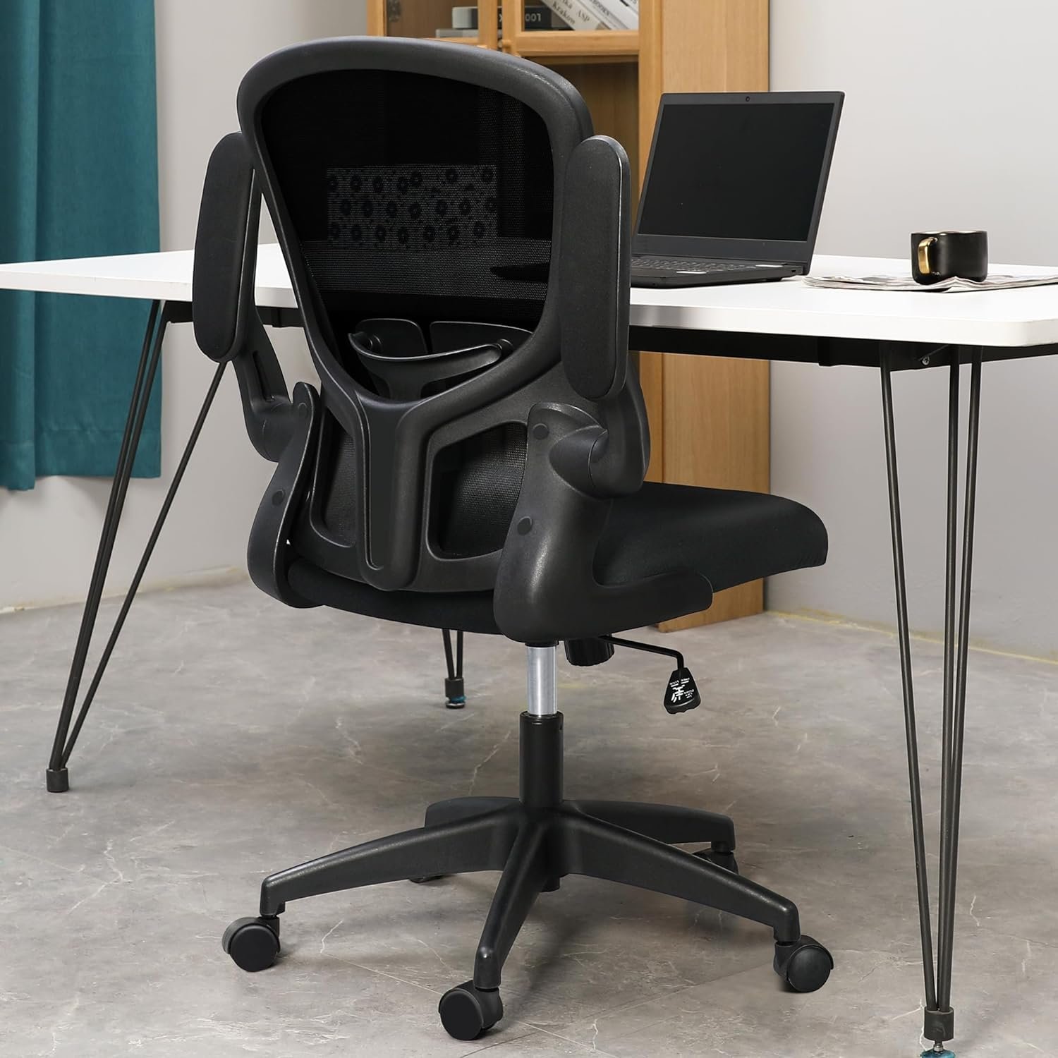 [ Convenient Storage ] 90° Adjustable flip-up arms can place the chair under the desk to save space. Suitable for office, room, study and living room.