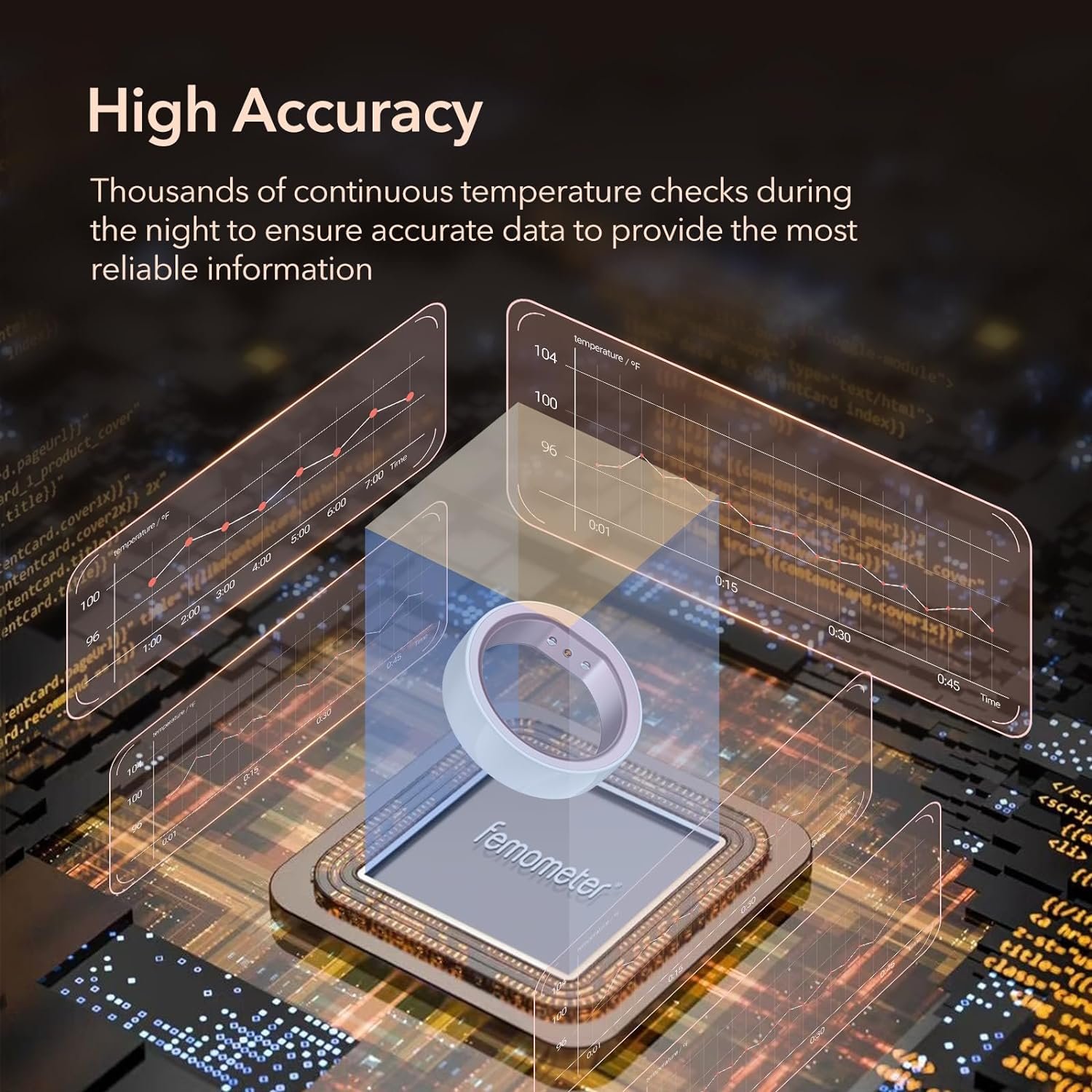 【High Accuracy & Convenience】: Compared with traditional oral thermometers that take a single temperature measurement, the finger ring continuously detects temperature thousands of times a day while you sleep, which greatly improves the convenience of use and the accuracy of ovulation window/period prediction.