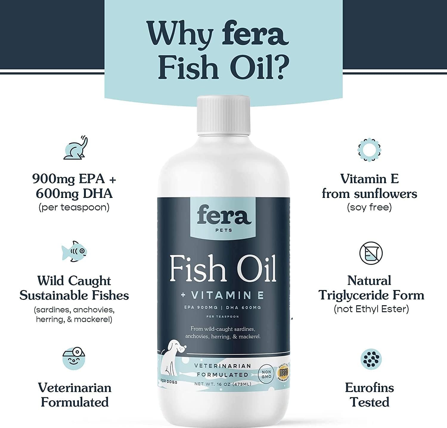 Powerful omega 3 fish oil: Fera’s fish oil supplements help with your pet’s dry, itchy skin, and enhance their coat; this cat and dog fish oil also helps maintain your pet’s immune and brain function