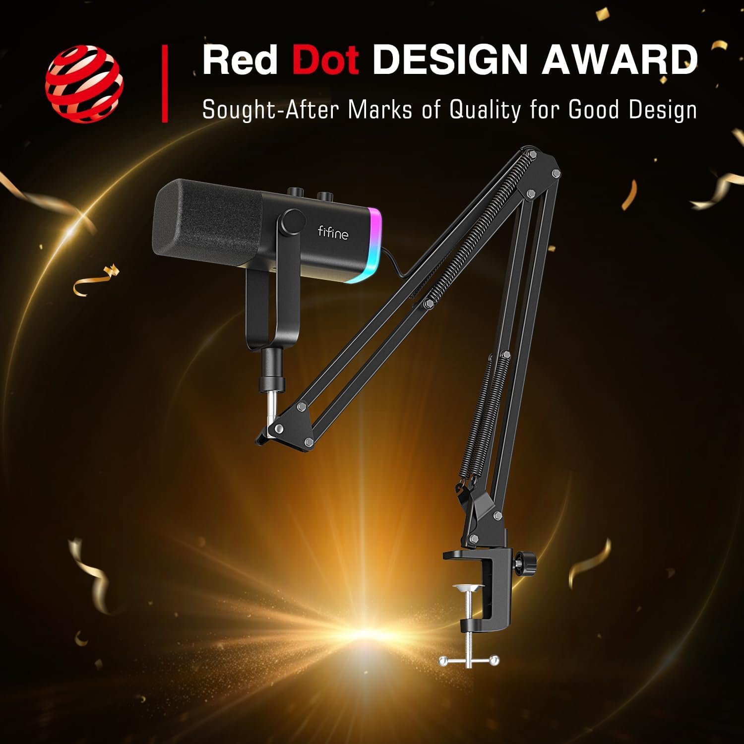 FIFINE XLR/USB Gaming Microphone Set, Dynamic PC Mic for Streaming Podcasting, Computer RGB Mic Kit with Boom Arm Stand, Mute Button, Headphones Jack, for Recording Vocal Voice-Over-AmpliGame AM8T