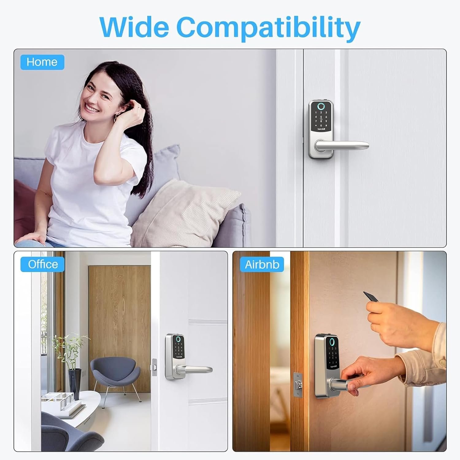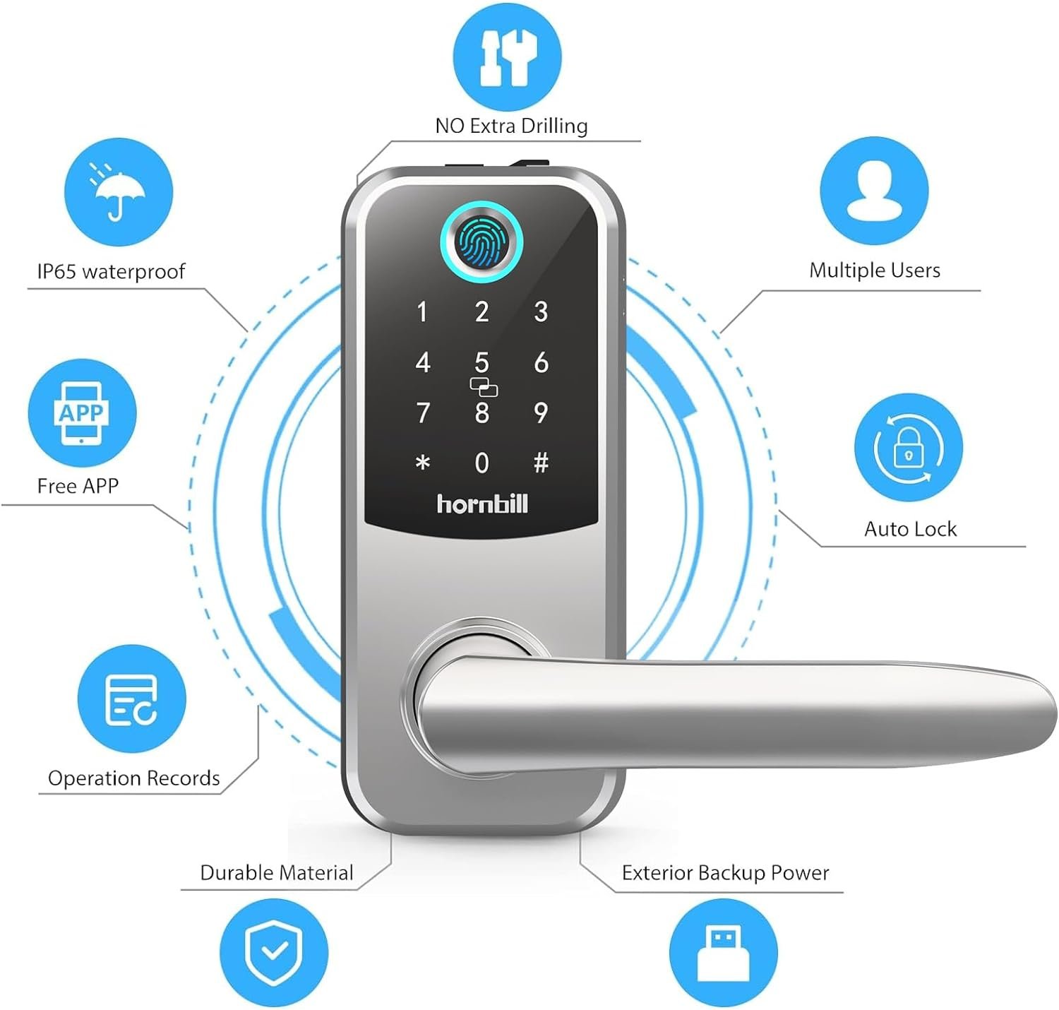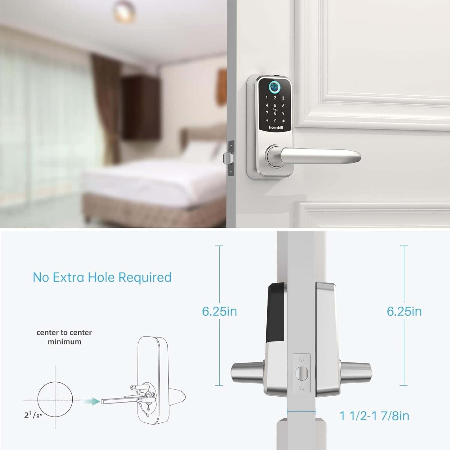Easy to Install>>Hornbill keyless entry door lock is designed with reversible door lever for both left and right-handle doors. Compatible with standard US wooden doors. With user manual, you can install lock easily with only 15 minutes, no hard wiring. Ideal new home gifts.