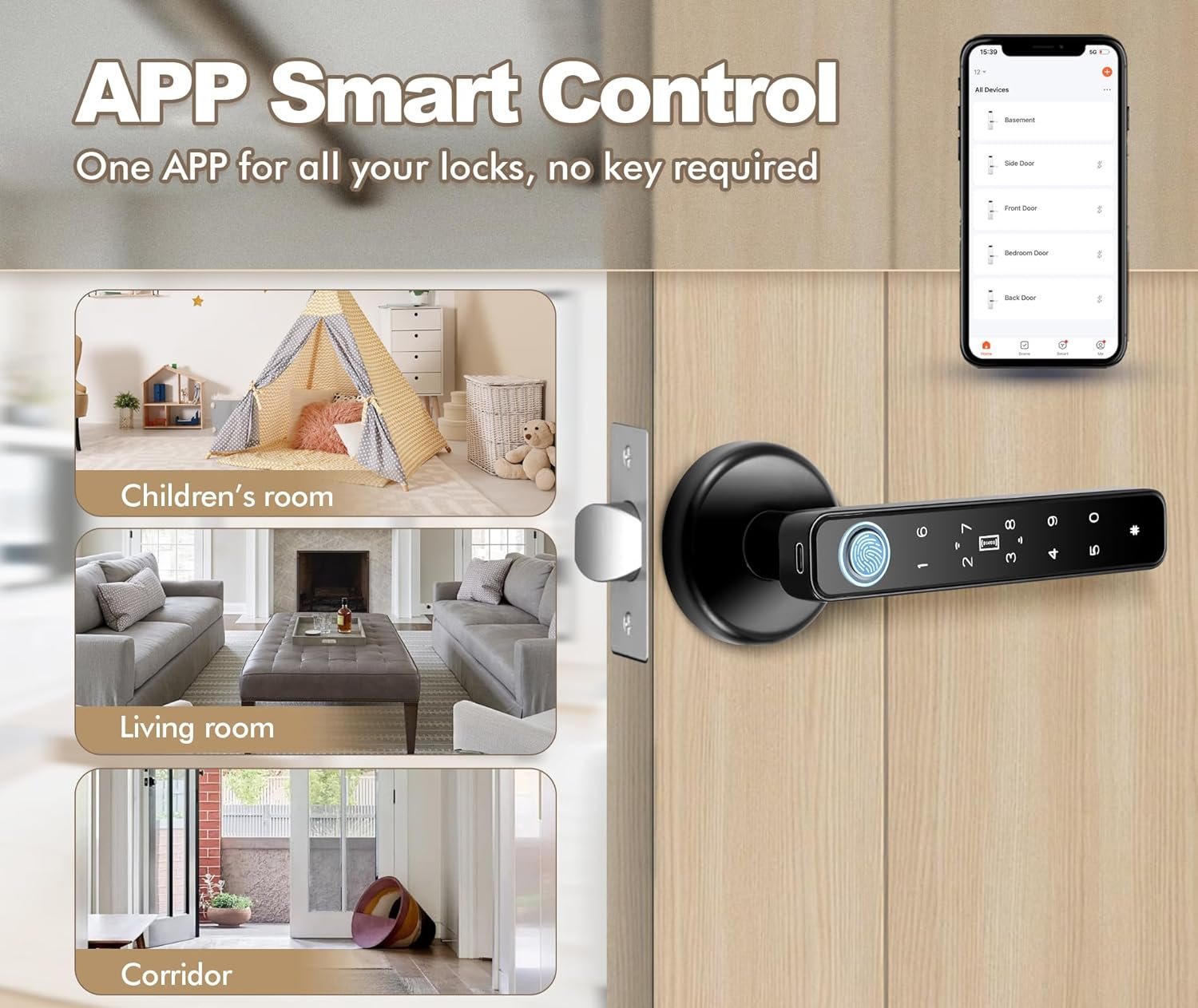 Fingerprint door knob with app