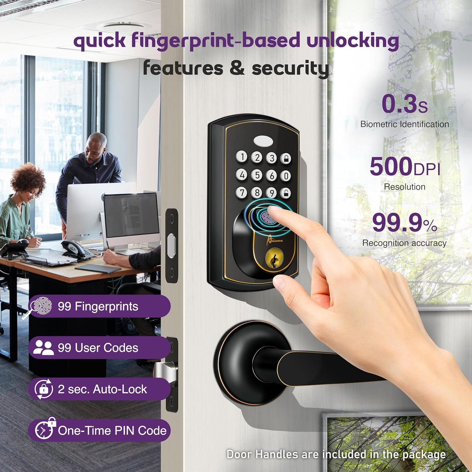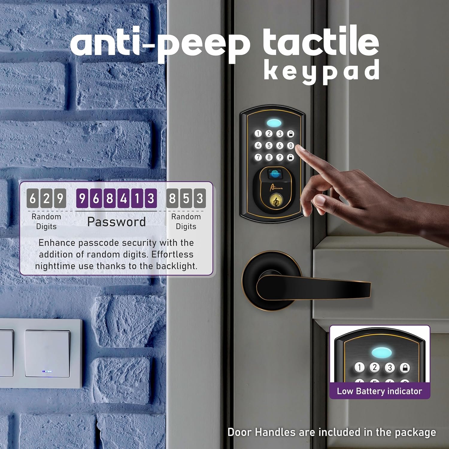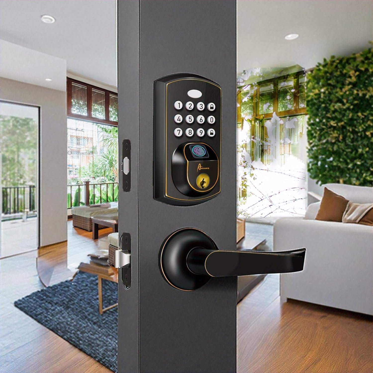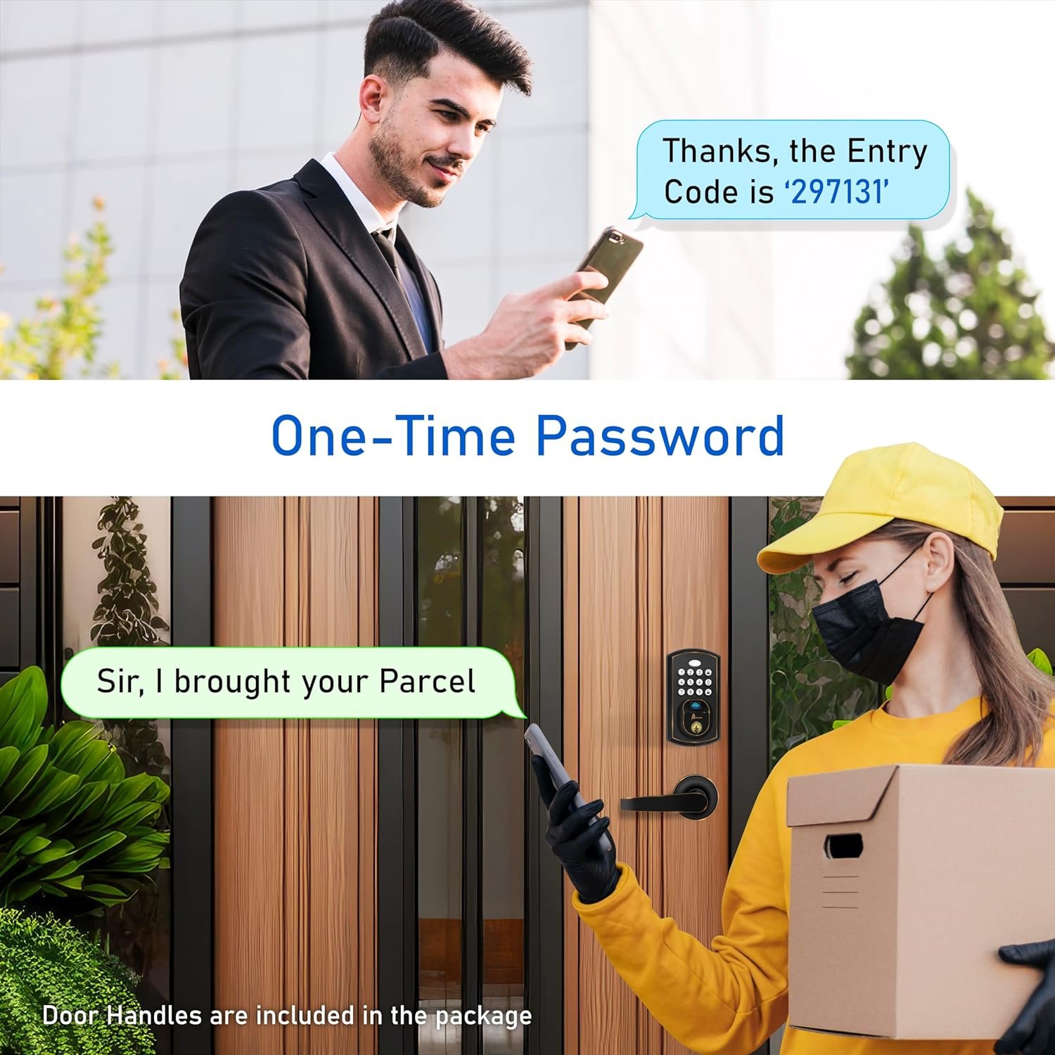 [4-in-1 KEYLESS ENTRY DOOR LOCK]: Elevate Your Home Security with Our 4-in-1 fingerprint door lock System – Unlock Your Door Using Fingerprints, Passwords, One-time Codes, App or Traditional Keys with Our front door lock set Comprehensive Access Control for Peace of Mind.