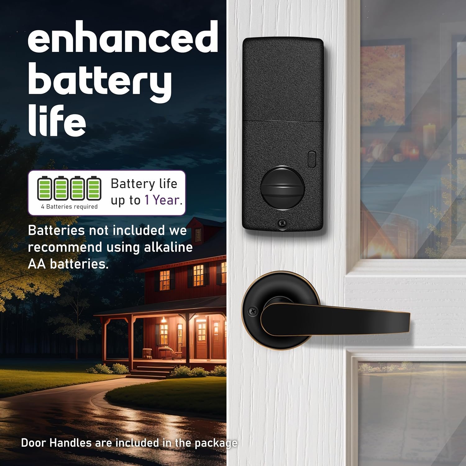 [EASY INSTALLATION]:This digital door lock with keypad set fit almost any type of door with 35-50mm thickness & can be installed in minutes easily. Follow the User Manual or Installation Video of this front door lock for step-by-step instructions. Note: The electronic lock is powered by 4xAA Alkaline batteries which is not included.