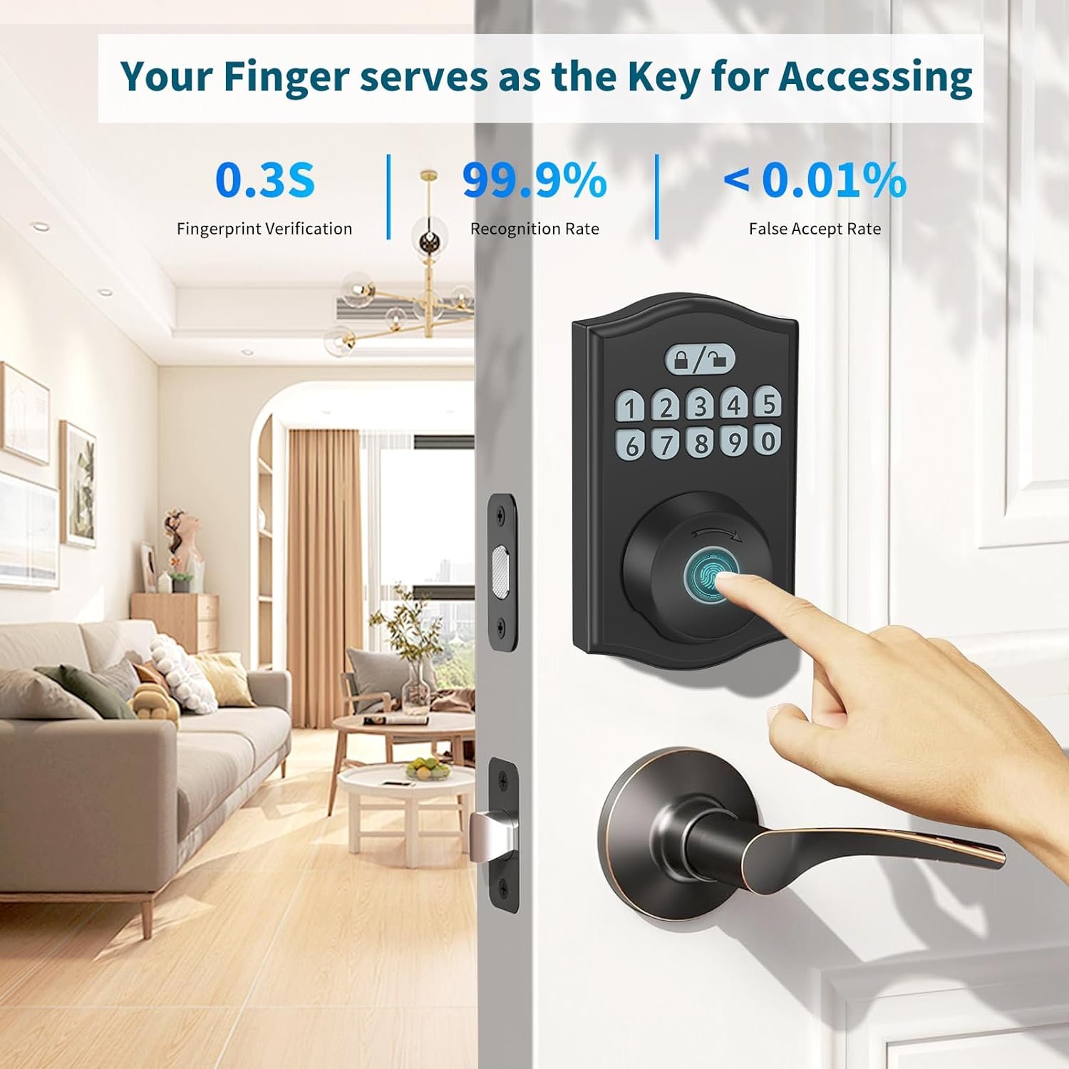【Flexible Unlocking】Experience the convenience of Passwords and Fingerprint Unlocking, Accommodating up to 50 User Codes or Fingerprints.